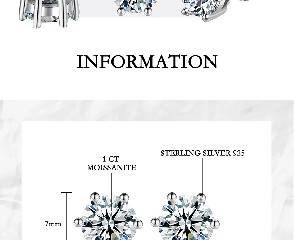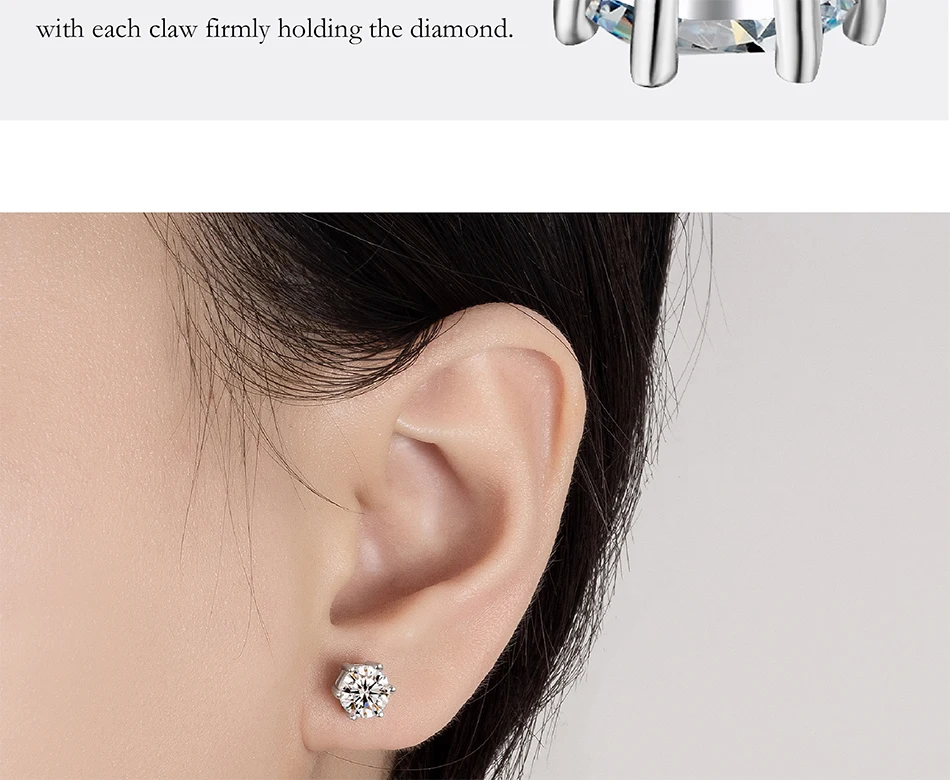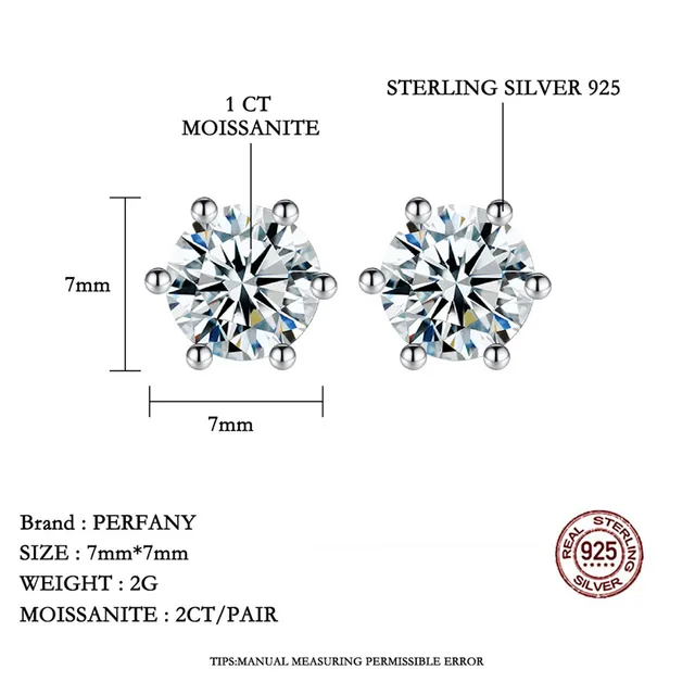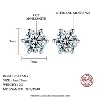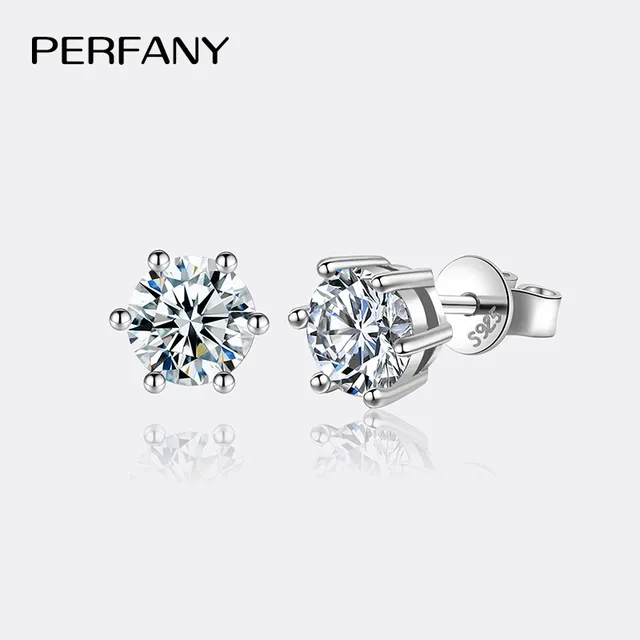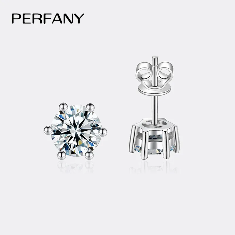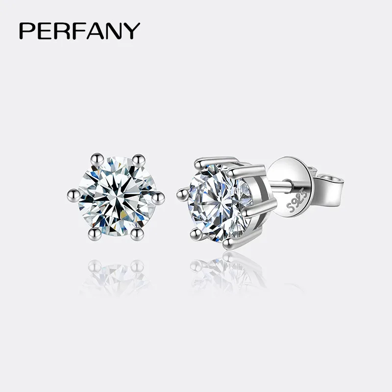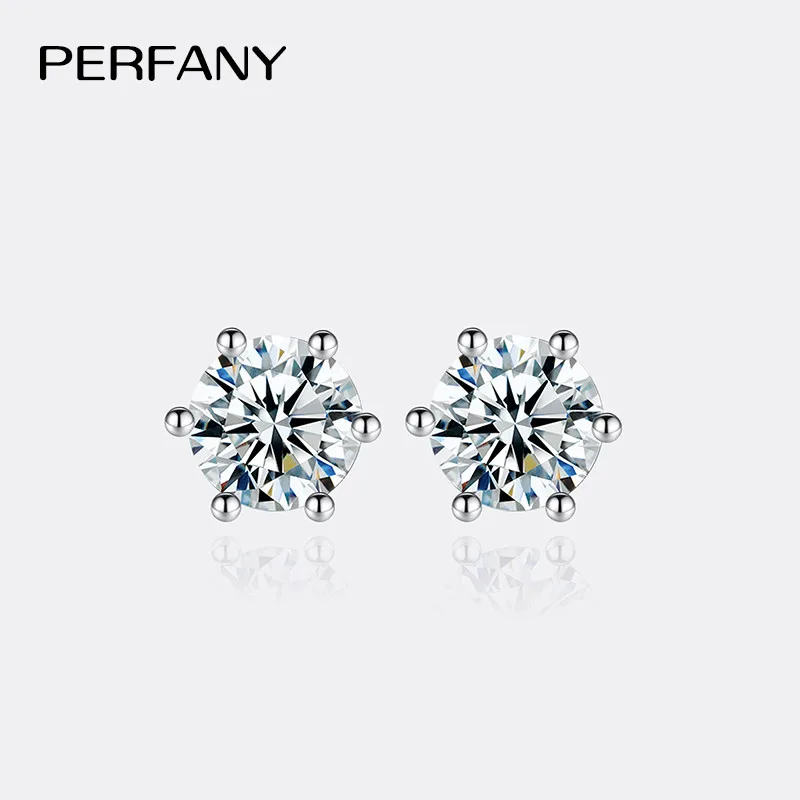 PERFANY 0.2-2CT Moissanite Earrings For Women S925 Pure Silver Classic Six Claw Shiny Laboratory Diamond