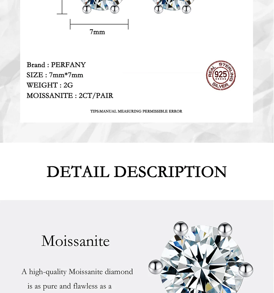 | Moissanite Weight | 0.4CT/0.6CT/1CT/1.6CT/2CT/4CT/per Pair |