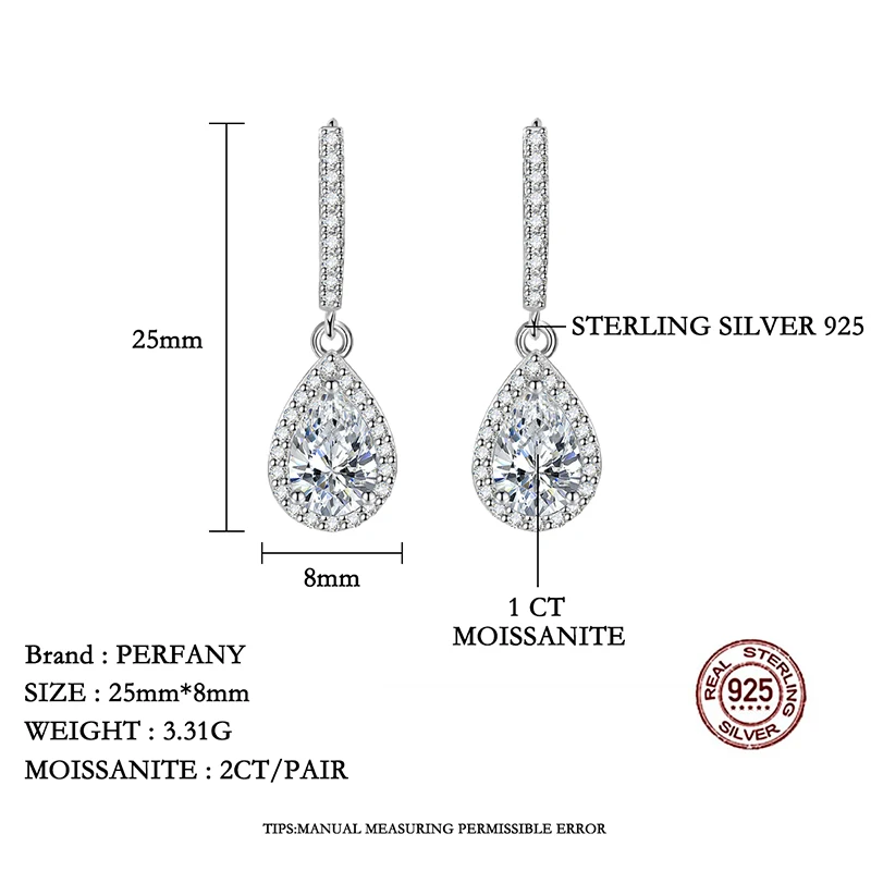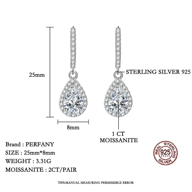 Price range: 62.70$ through 75.58$PERFANY 1CT Pear Cut Moissanite Earrings for Women S925 Pure Silver Laboratory Cultivated Diamonds Elegant