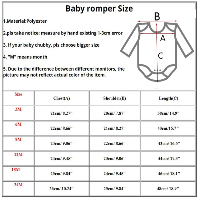2.pls take notice: measure by hand existing 1-3cm error 3. If your baby chubby, pls choose bigger size