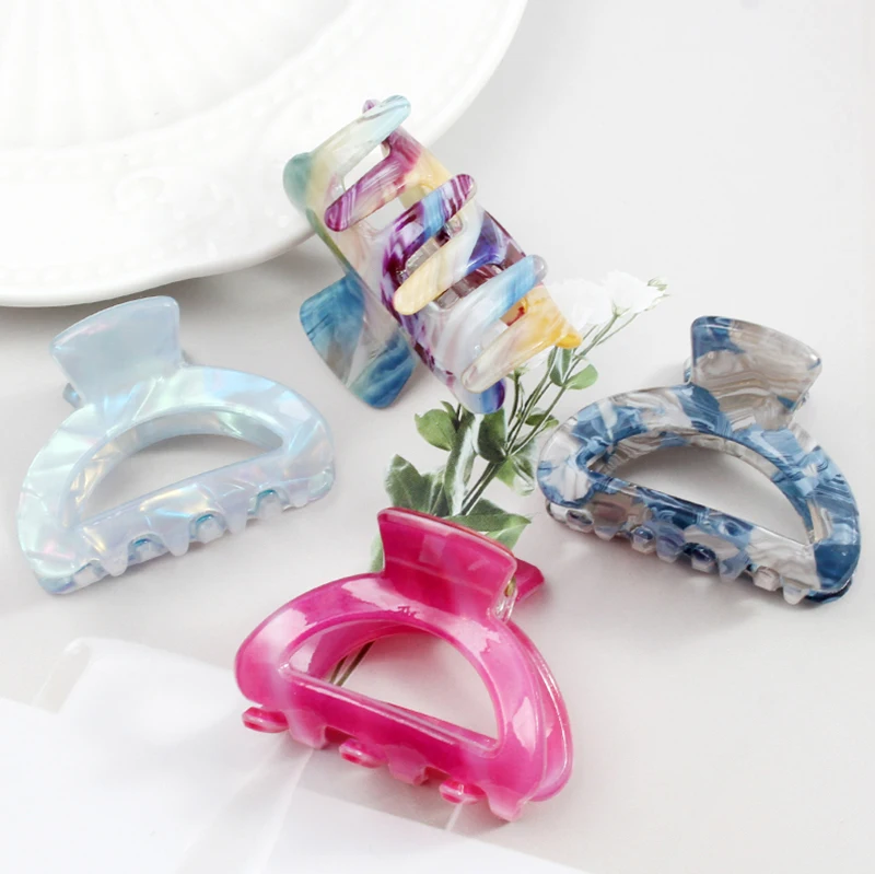 Women Square Semicircle Catch Clip Elegant Hairpins Jelly Color Crab Barrette Acrylic Small Hair Claws Hair Accessories Gifts