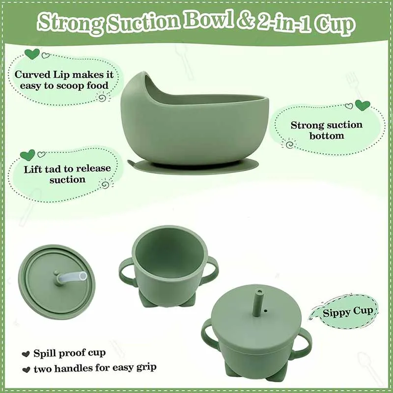 **Self feeding – Our unique silicone clip is perfect for children who are learning to self feed; The suction base ensures that it remains in place; Perfect for use on high chair trays or tables.
