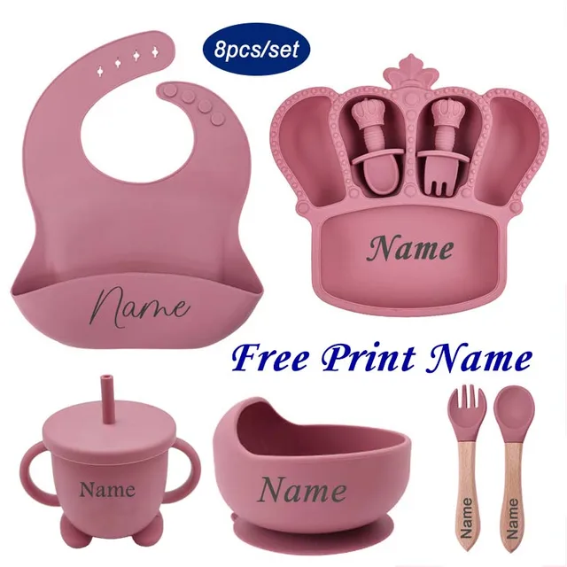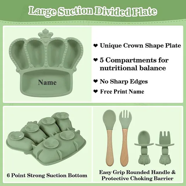 Personalized Name Baby Feeding Plate Dishes Silicone Tableware Crown Plate Spoon For Kids Newborn Gift Children’s Dinner Utensils BPA Free Shipping