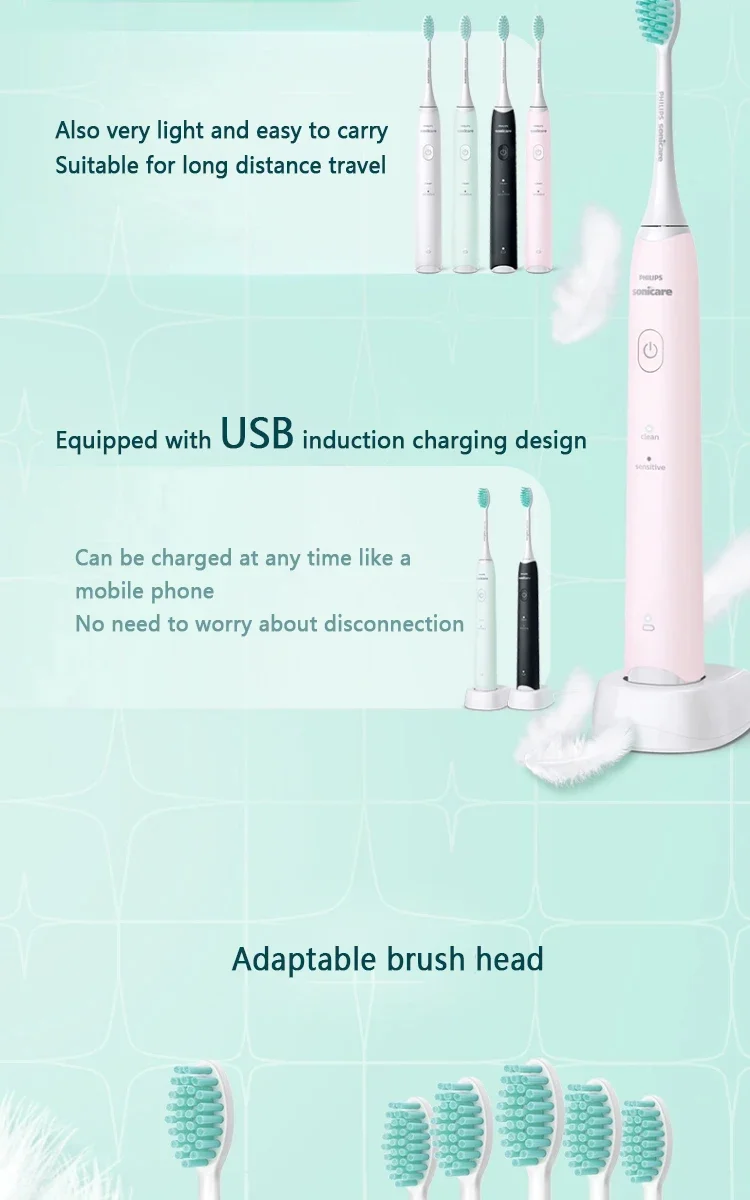 Fairywill Sonic Electric Toothbrush E11 Waterproof USB Charge Rechargeable Electric Toothbrush 8 Brush Replacement Heads Adult