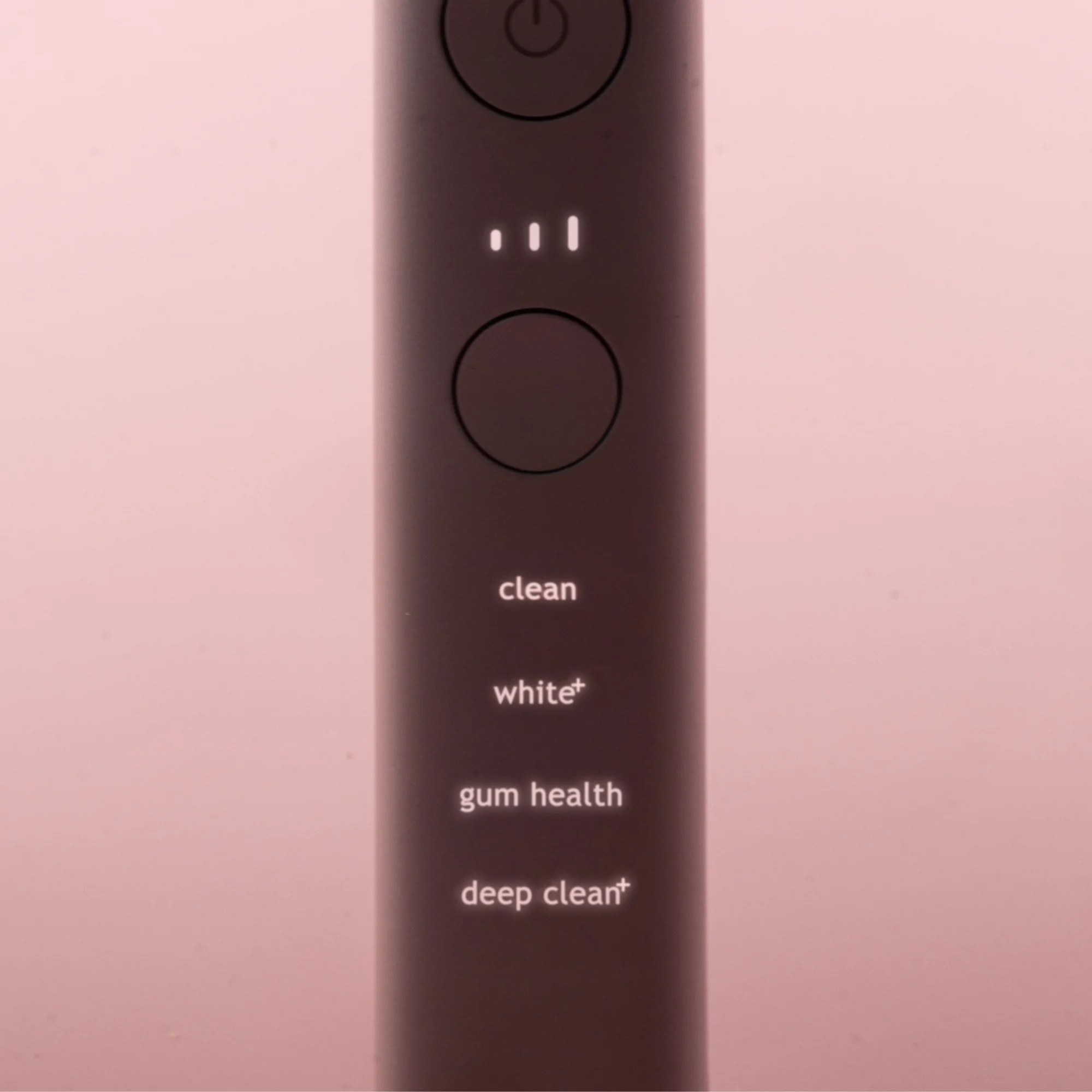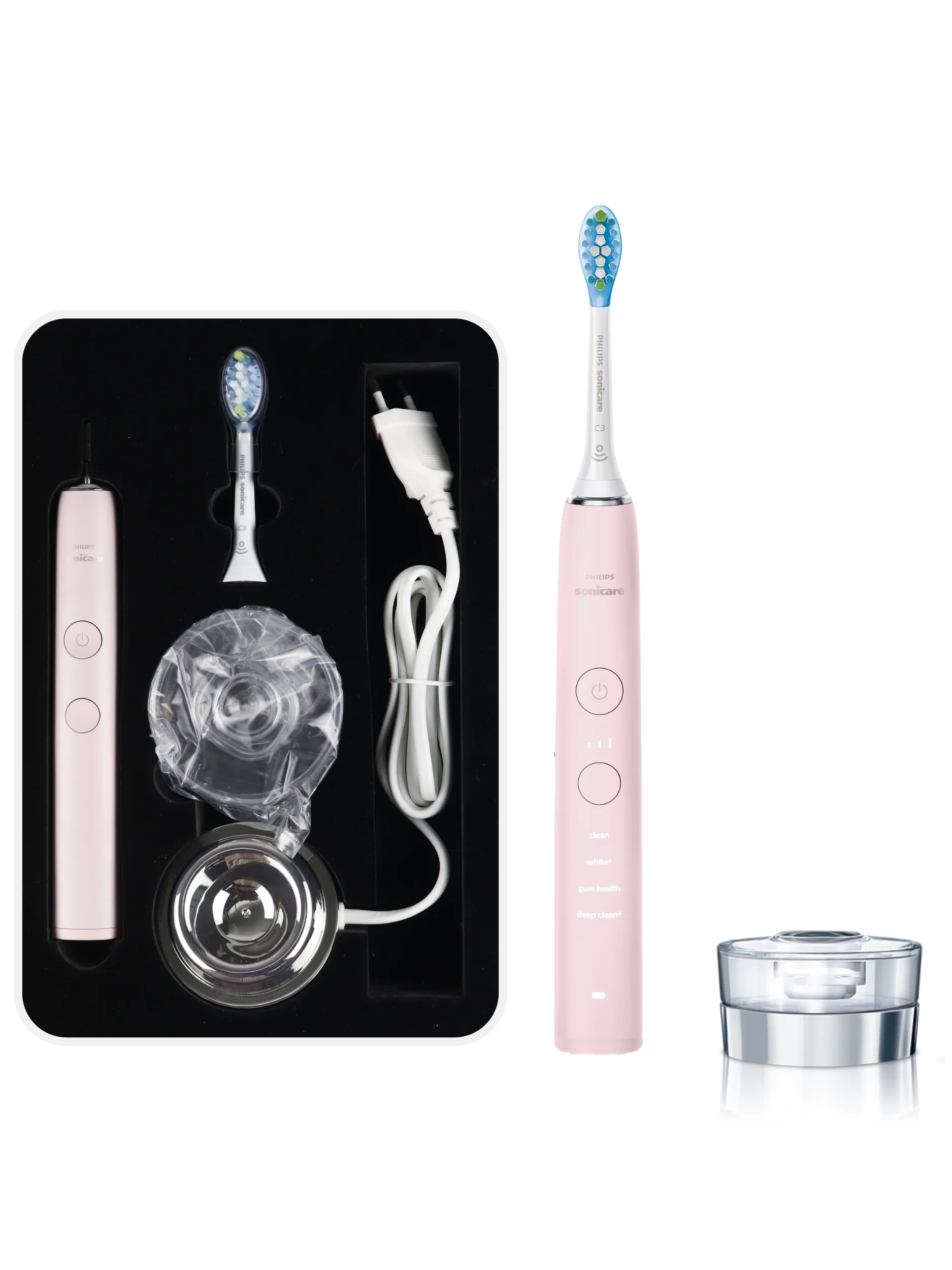 The DiamondClean 9000 has Clean, Brighten+, Gum Health and Deep Clean+ modes to cater for your cleaning needs.Clean mode makes your daily cleaning more thorough, Brighten+ removes plaque, Gum Health gently cleans along the edges of the gums, and Deep Clean+ cleans thoroughly and deeply.Choose from three levels of toothbrush strength, higher for more thorough cleaning and lower for sensitive mouths.