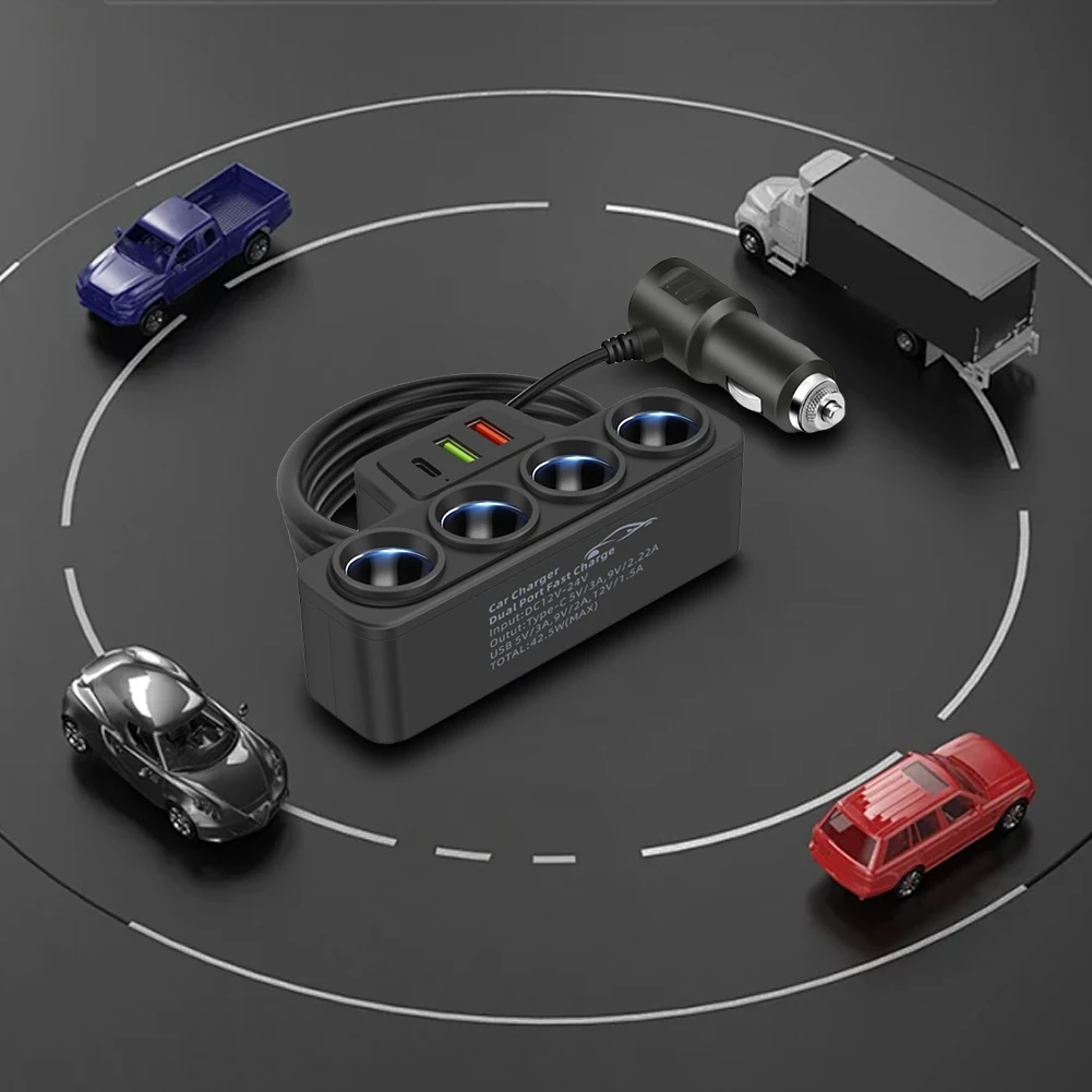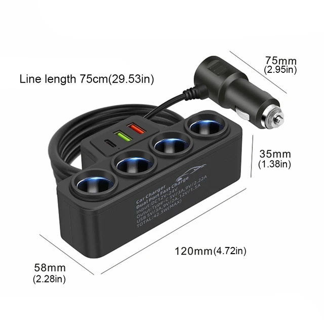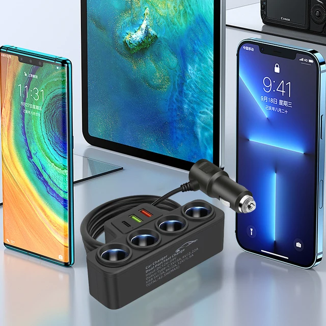1. Multi-Functional Outlets: The car cigarette lighter adapter features 4 sockets, allowing you to connect multiple electronic devices or chargers simultaneously, making it convenient to power or charge multiple devices at once.