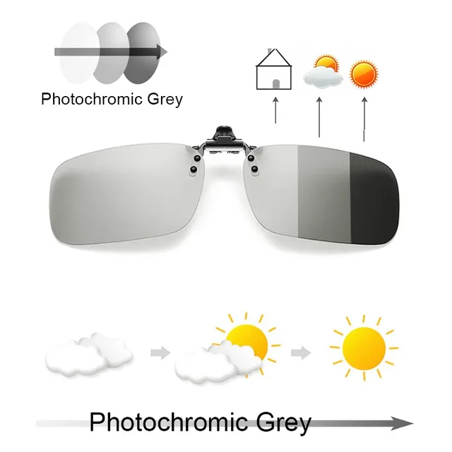 Photochromic Grey Polarized Clip on Sunglasses Mater Bridge Can up Clip Men Women Sun Glasses Install