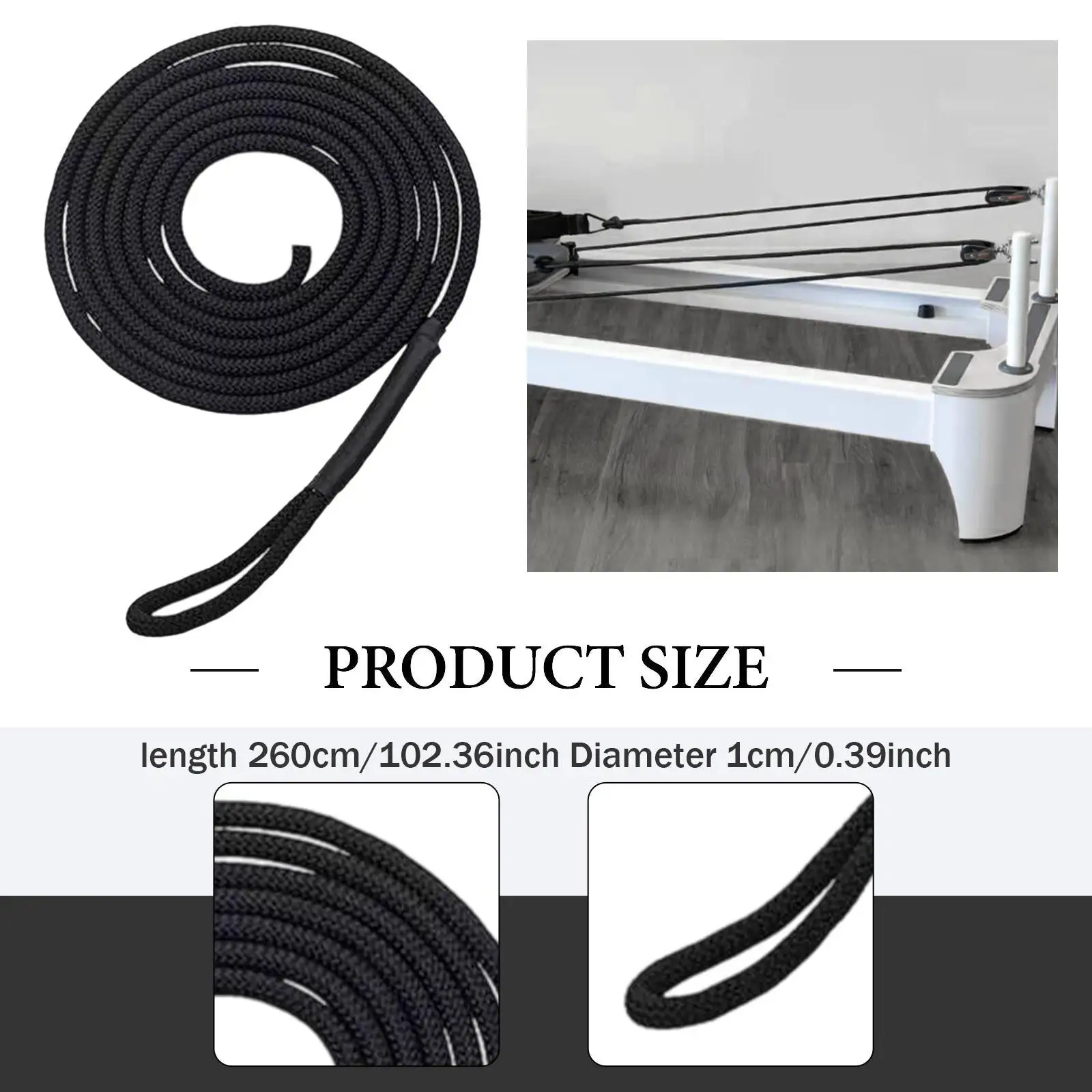 【Optimal Dimensions】: With a total length of approximately 260 cm/102.36 inch and a rope diameter of 1 cm/0.39 inch, the pull ropes are perfectly sized to fit your Pilates core bed setup seamlessly