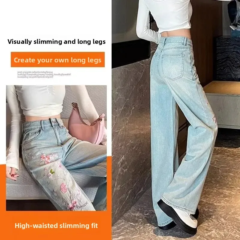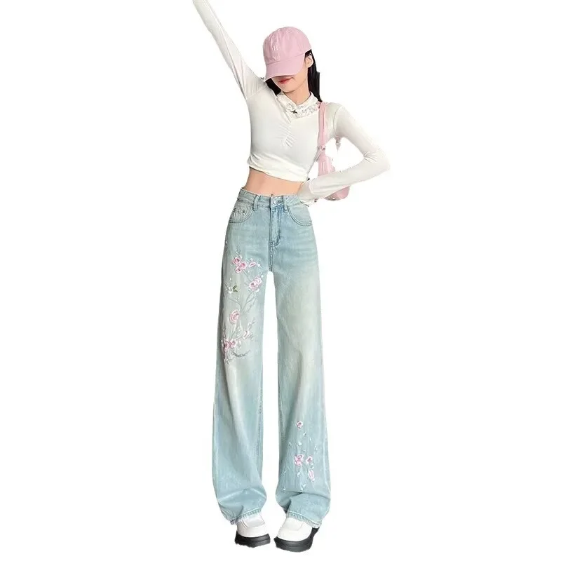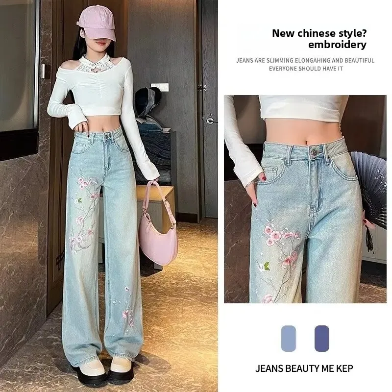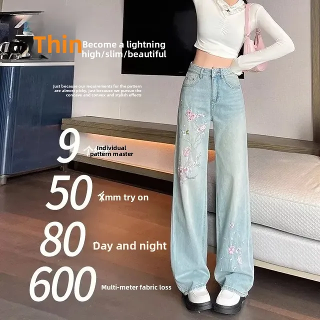 • Pink Flower Embroidery : The exquisite pink flower embroidery adds a touch of femininity and elegance, making these jeans stand out.