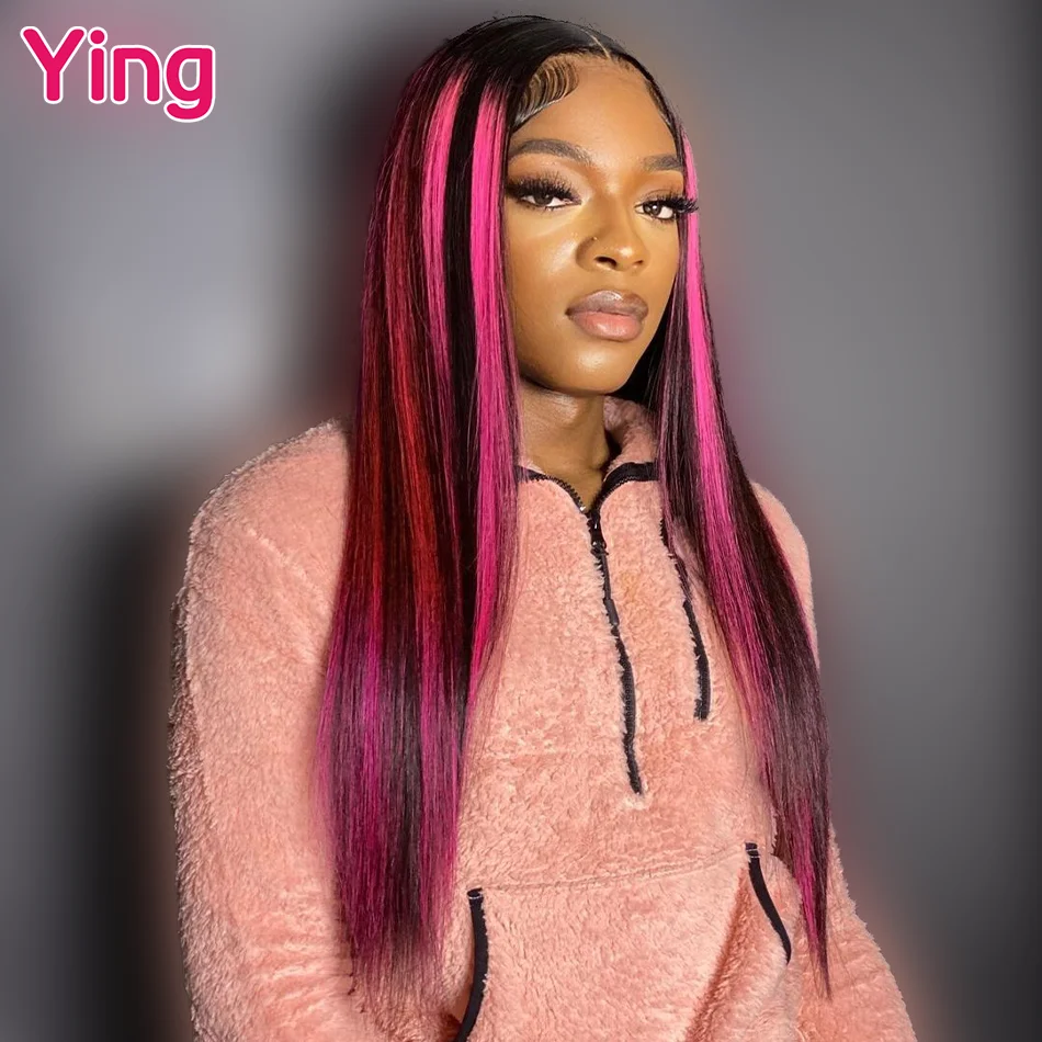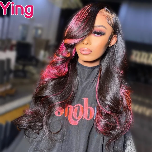 Pink Highlight 13×6 Lace Front Wig Pre Plucked Body Wave Colored Human Hair Wigs Transparent Peruvian Remy Hair For Black Women