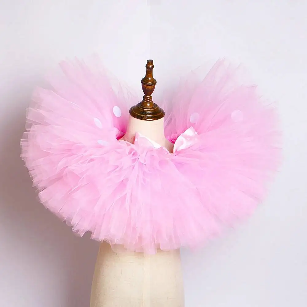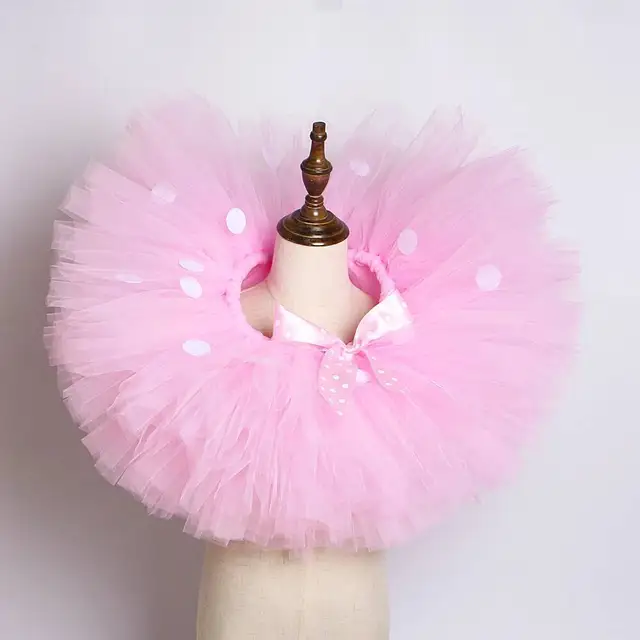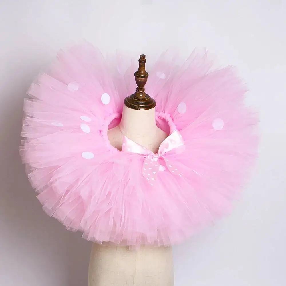 Material: High Quality Nylon Tulle+Elastic+Ribbon+White Dots.