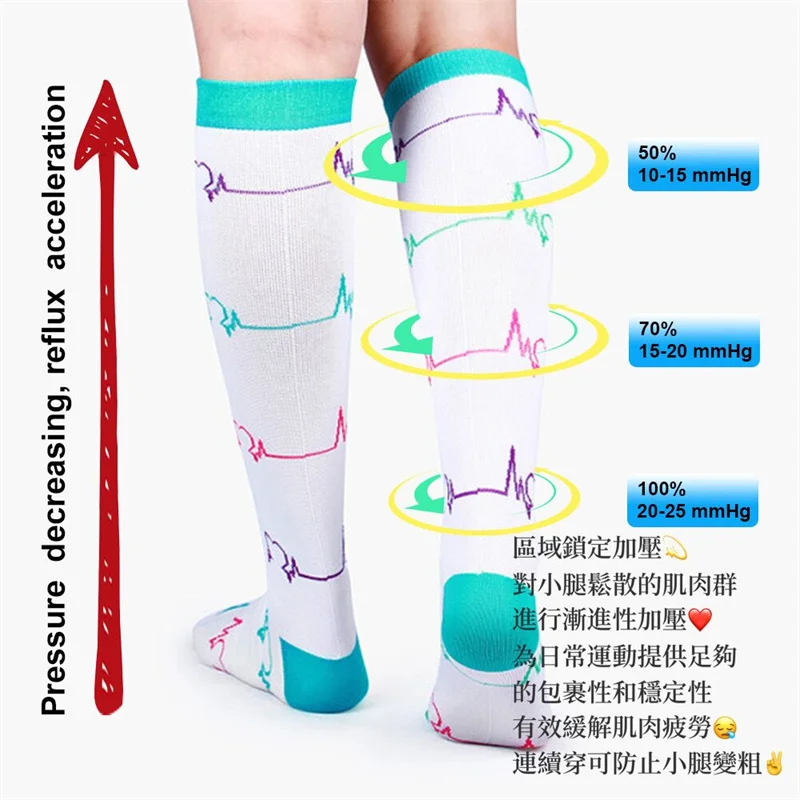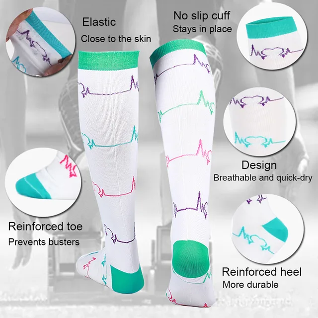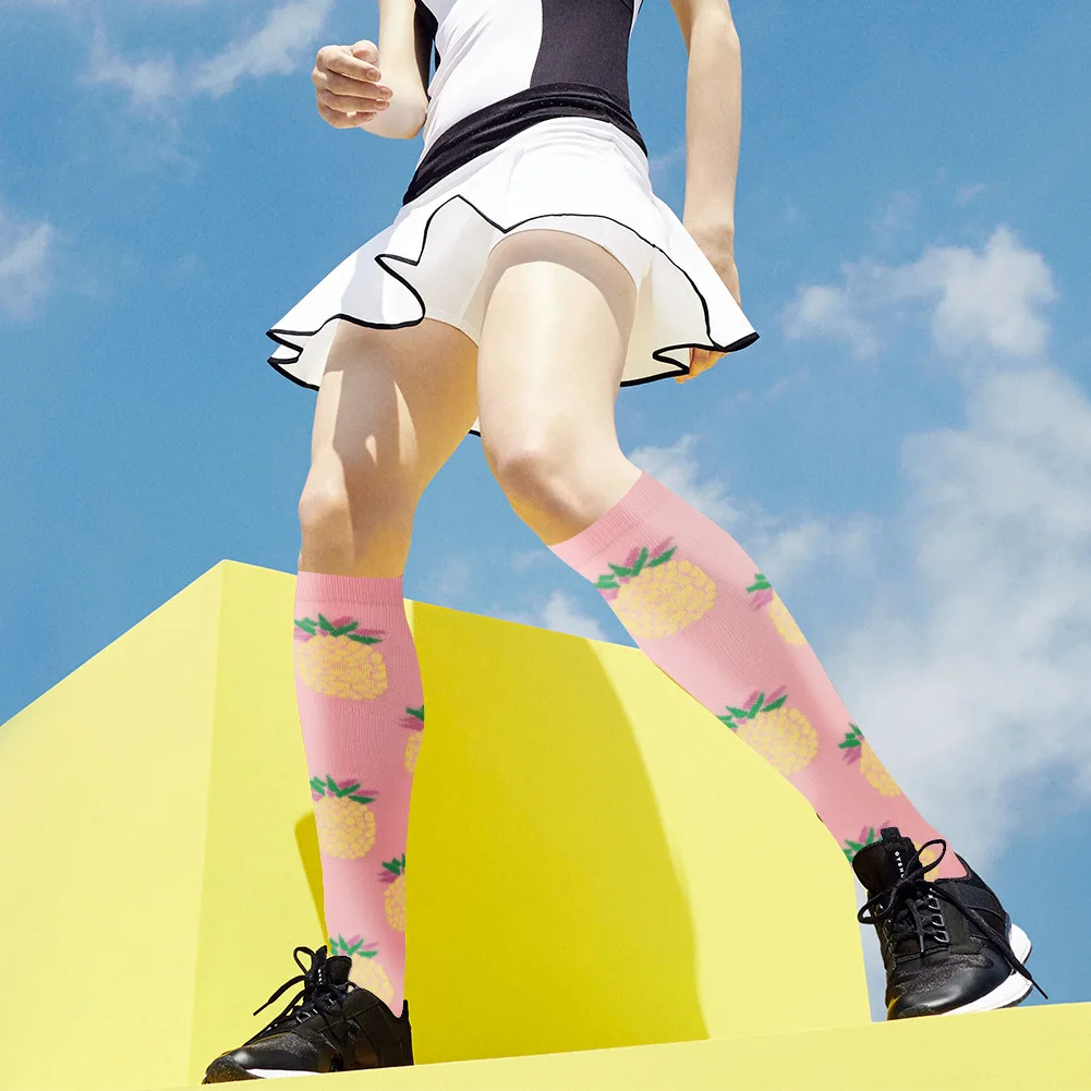 Pink Socks Men Running Compression Socks Stockings 20-30mmhg Sports for Marathon Cycling Football Breathable