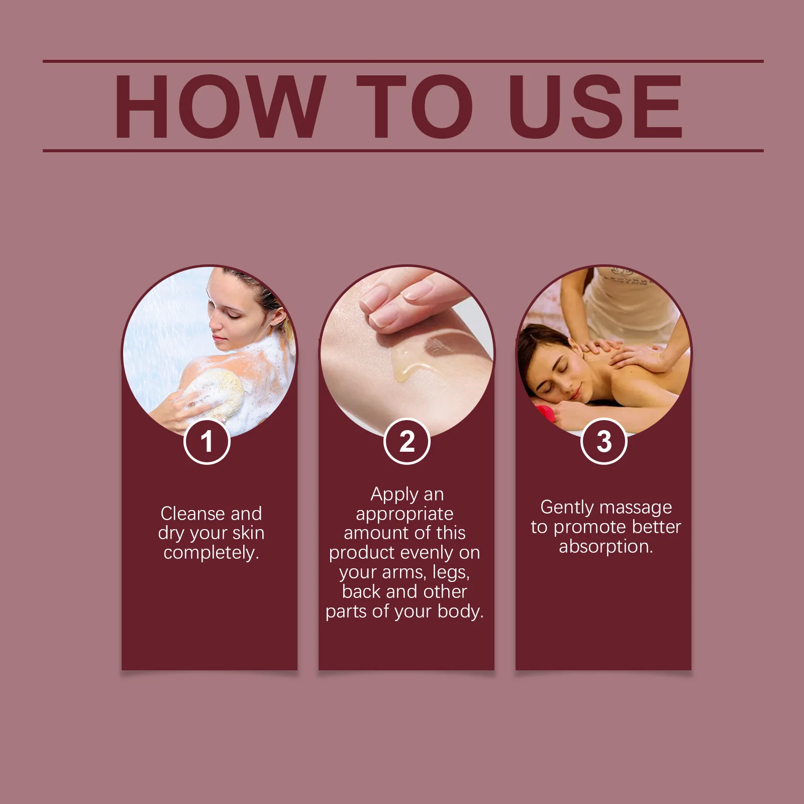 2. Apply an appropriate amount of this product evenly on your arms, legs, back and other parts of your body.