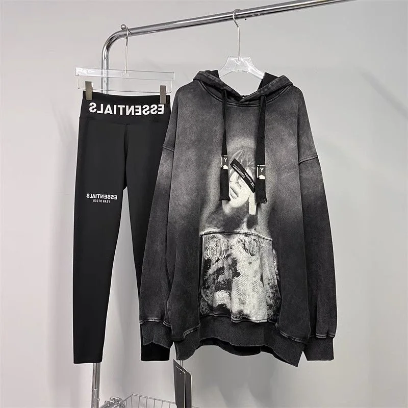 Plus Size 150kg American Vintage Women Hoodies High-end Design Print Autumn Winter Hooded Sweatshirts