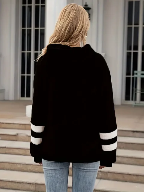 Sporty Color Block Open Cardigan Sweatshirt Loose Casual Stand Collar Jacket for Women Autumn 2025 Street Style Long Sleeve
