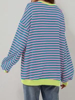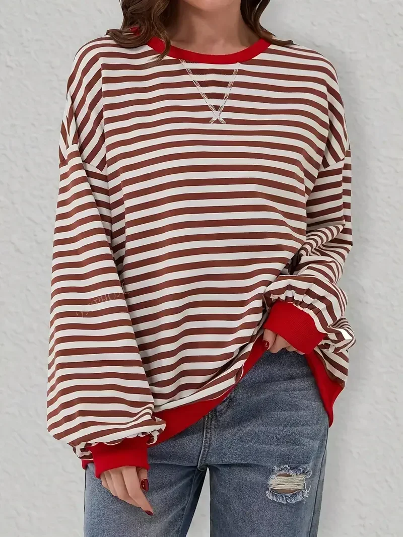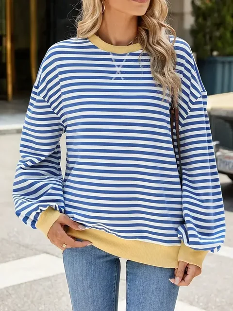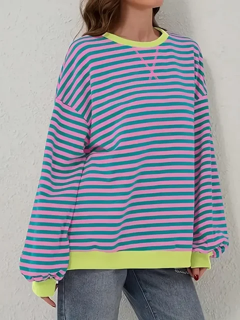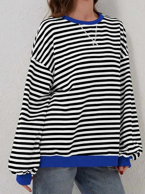 Plus Size 1XL-5XL Women Casual Casual Striped Drop Shoulder Long Sleeve Sweatshirt Women’s Round