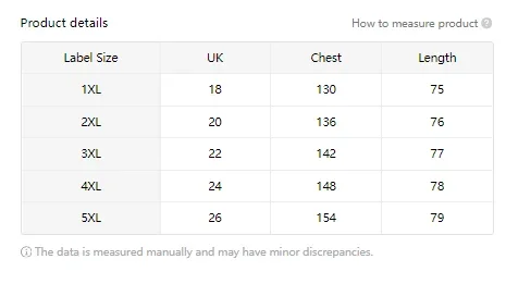 | size_info | {"sizeInfoList":[{"length":{"cm":"130","inch":"51.18"},"size":"1XL","vid":12668979},{"length":{"cm":"136","inch":"53.54"},"size":"2XL","vid":200000322},{"length":{"cm":"142","inch":"55.91"},"size":"3XL","vid":115781},{"length":{"cm":"148","inch":"58.27"},"size":"4XL","vid":200000990},{"length":{"cm":"154","inch":"60.63"},"size":"5XL","vid":200000991}]} |