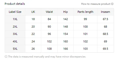 | size_info | {"sizeInfoList":[{"length":{"cm":"84","inch":"33.07"},"size":"1XL","vid":12668979},{"length":{"cm":"90","inch":"35.43"},"size":"2XL","vid":200000322},{"length":{"cm":"96","inch":"37.80"},"size":"3XL","vid":115781},{"length":{"cm":"102","inch":"40.16"},"size":"4XL","vid":200000990},{"length":{"cm":"108","inch":"42.52"},"size":"5XL","vid":200000991}]} |