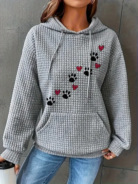 Plus Size 1XL-5XL Women's Elegant Casual Hoodie Sweatshirt  Ladies Random Paw & Heart Print Cozy Fall Winter Clothing Hoodie