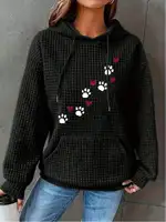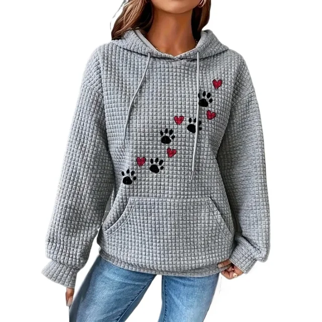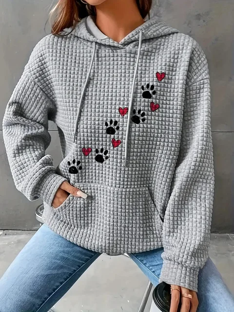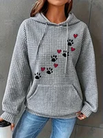 Autumn 2025 New Large Size Heat Transfer Flower Heavyweight Pure Cotton Casual Hoodie Street Style Loose Fit Long Sleeve Wome...