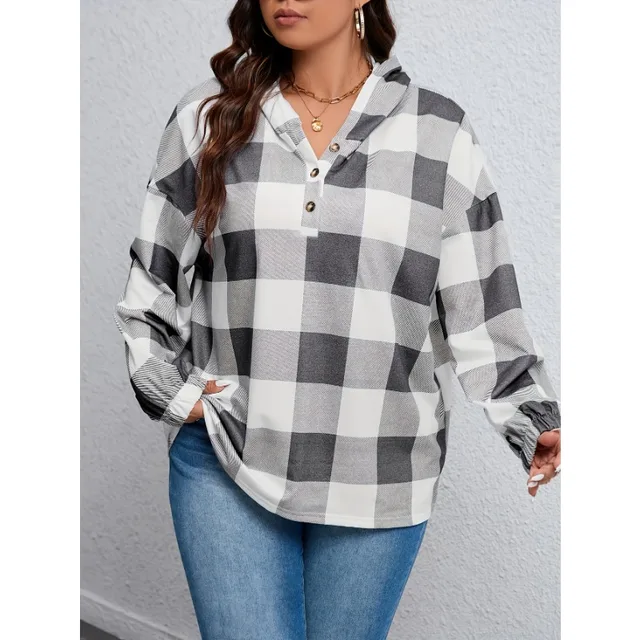 Plus Size 1XL-5XL Women Fashion Solid Color Hoodie Round Neck Long Sleeve Weatshirt with Drawstring Women's Loose Sweatshirt