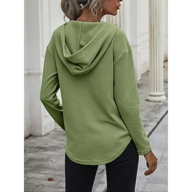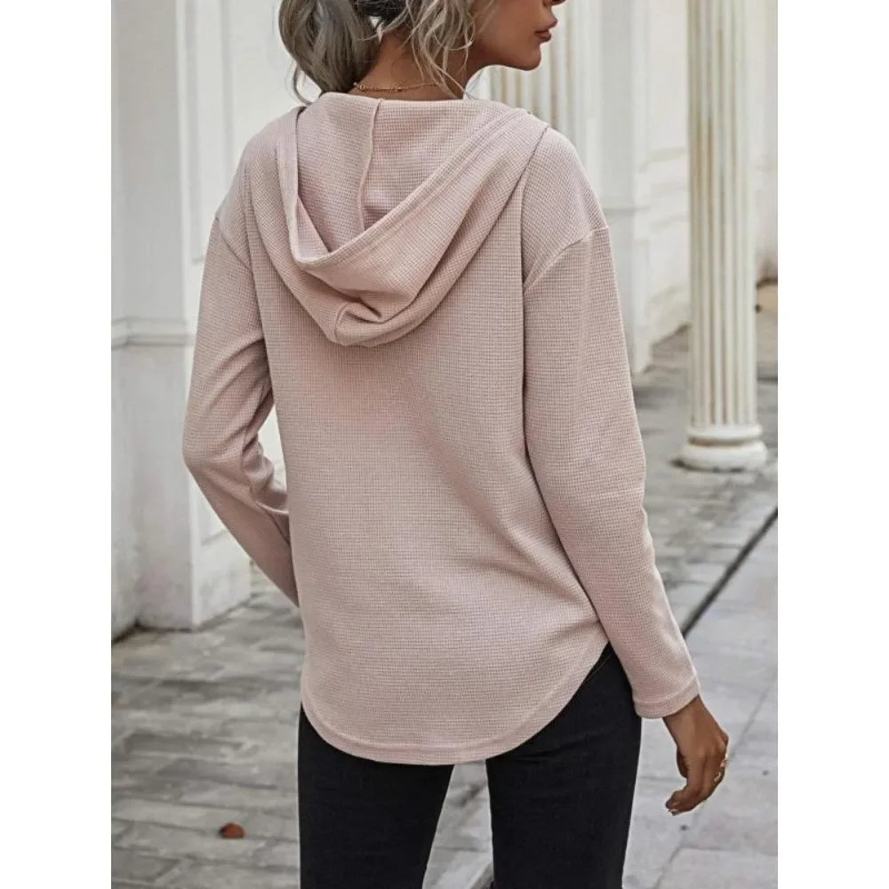 Plus Size 1XL-5XL Women’s Fashion Long-Sleeved V-neck Hoodies Pullovers Ladies Solid Color Pullover