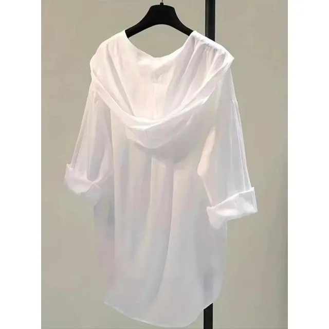 Loose Long Sleeve round Neck Knitted Hoodie Women Comfortable Casual Top Color Block Polyester Spandex Blend Mid-Length
