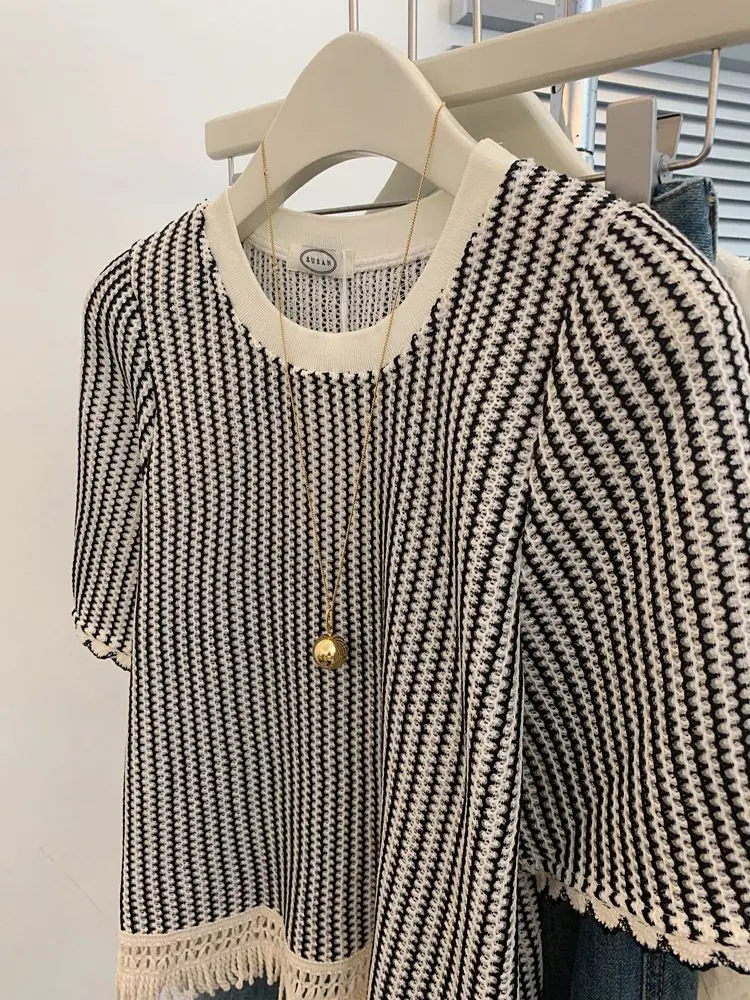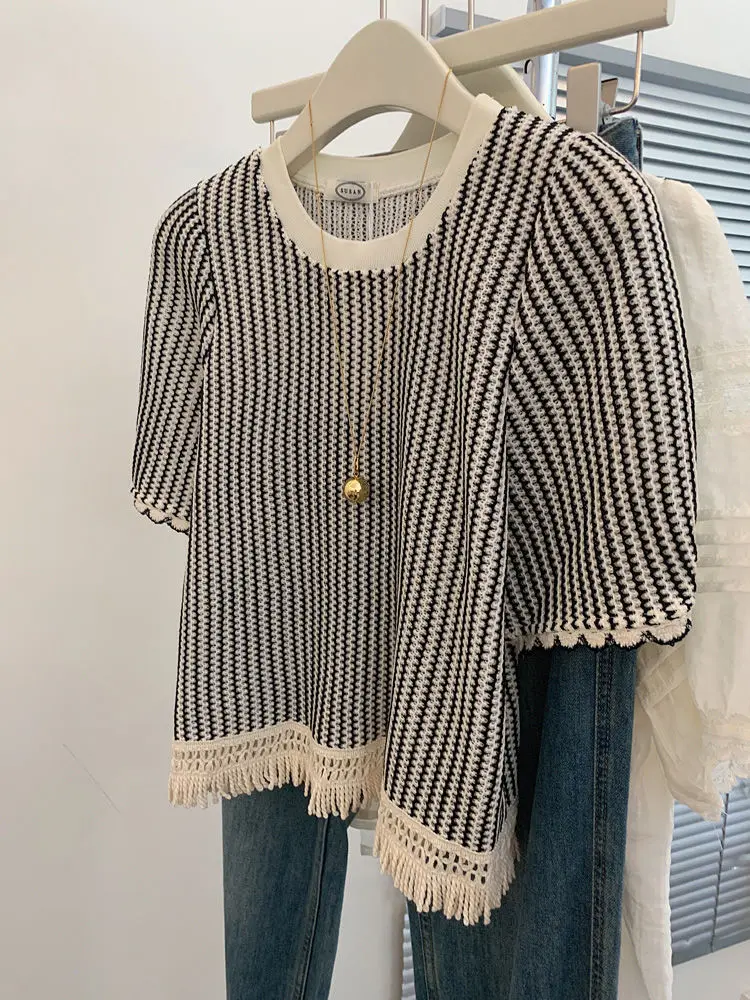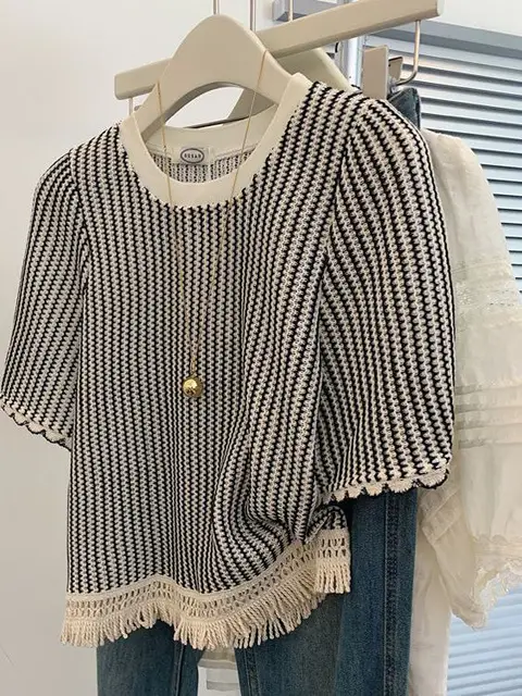 The stylish striped pattern adds a touch of elegance to this casual t-shirt, making it a versatile piece for any outfit.