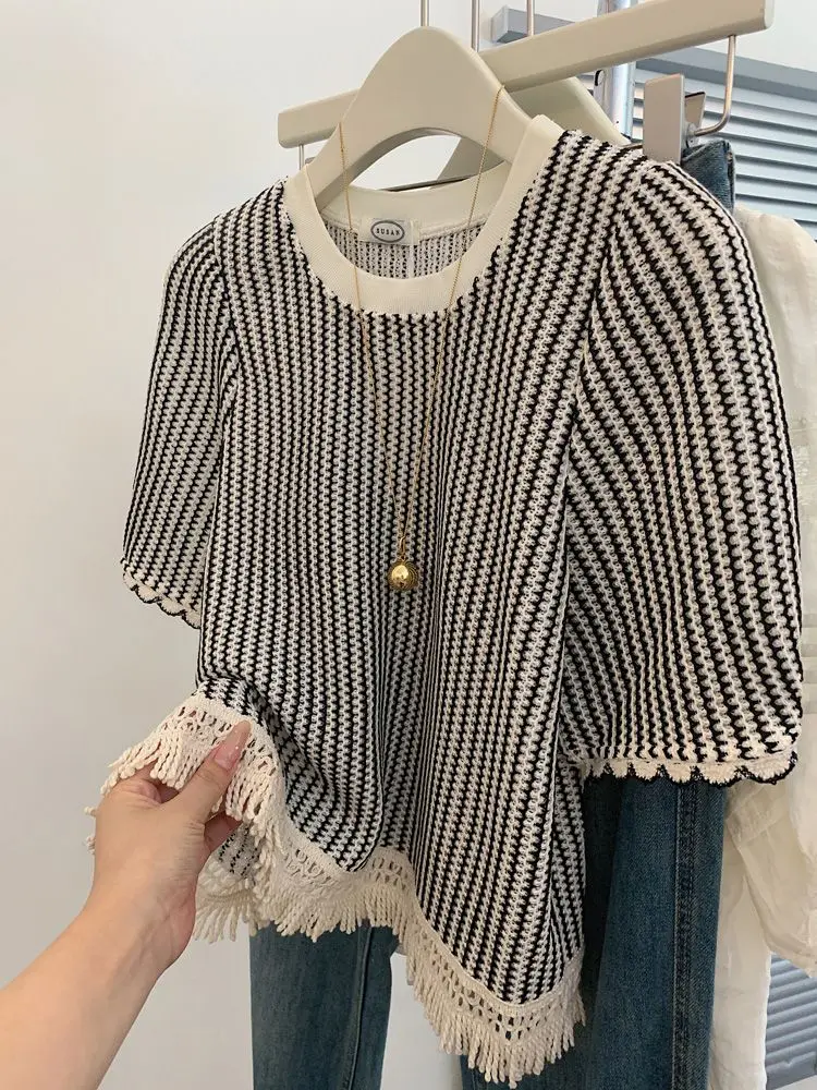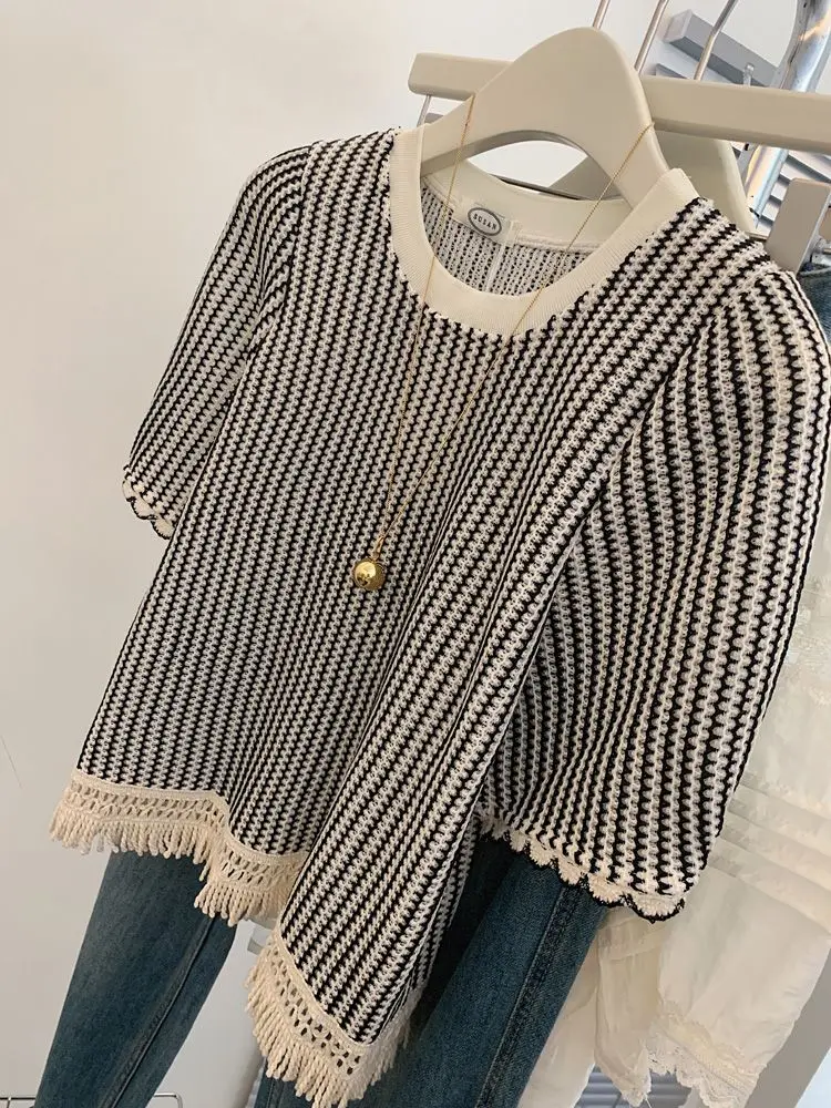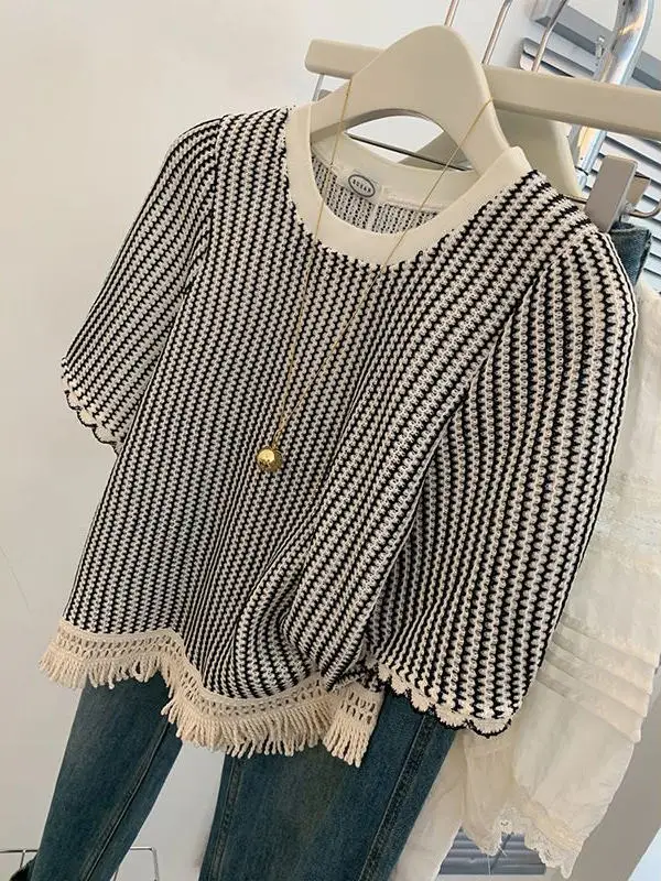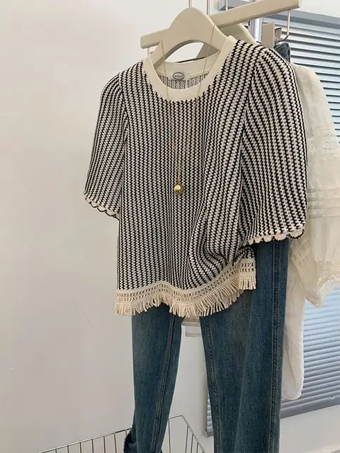 plus Size 300 Pou Women’s Striped ort Sve T-irt Loose Fit Summer Slimming Top Korean Sle Commute