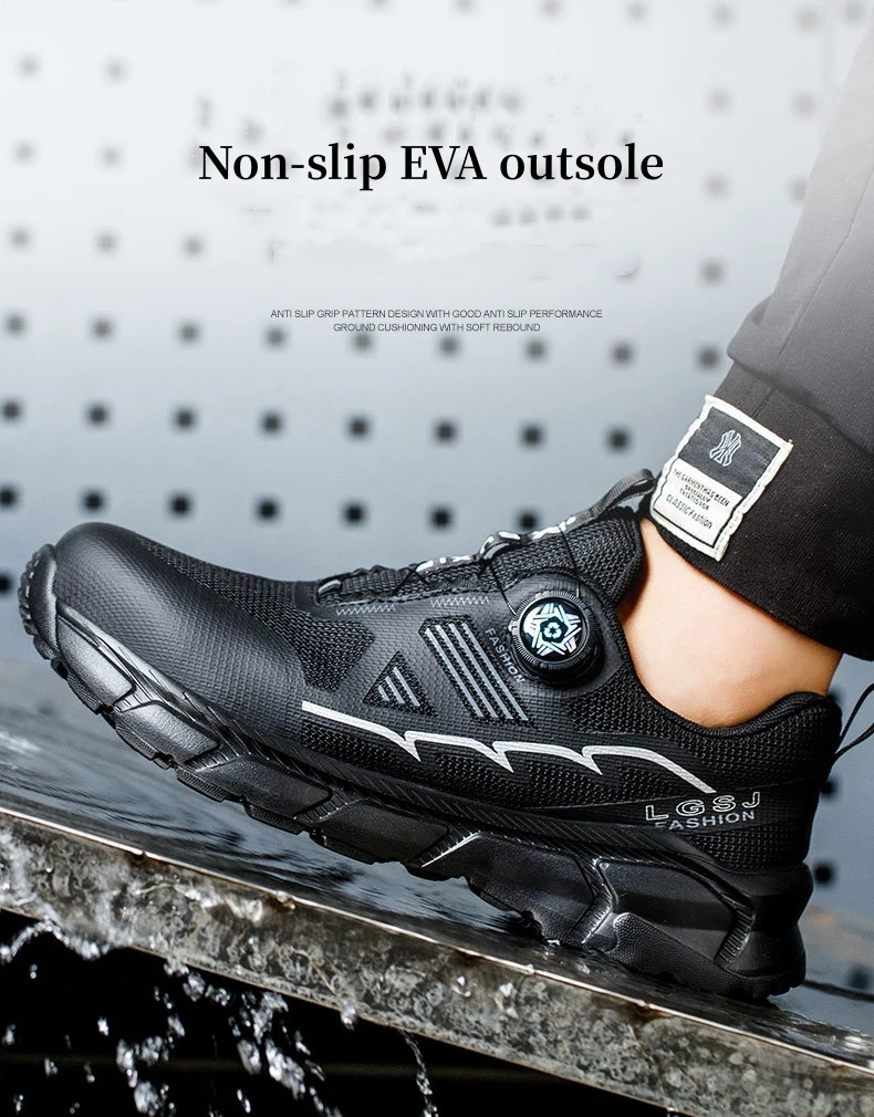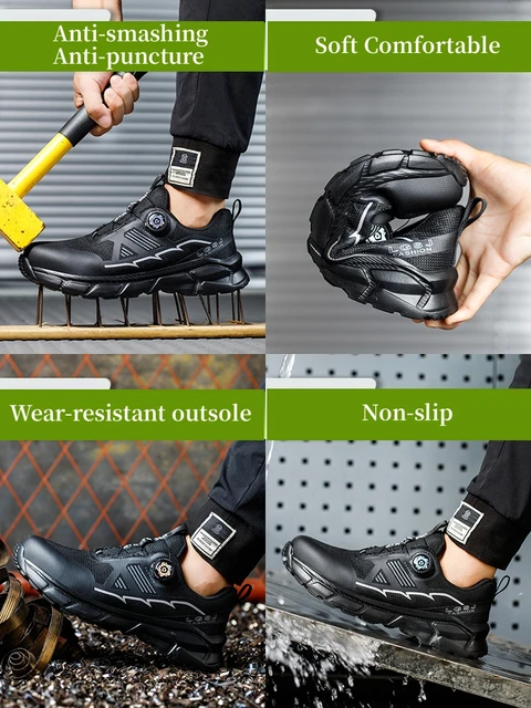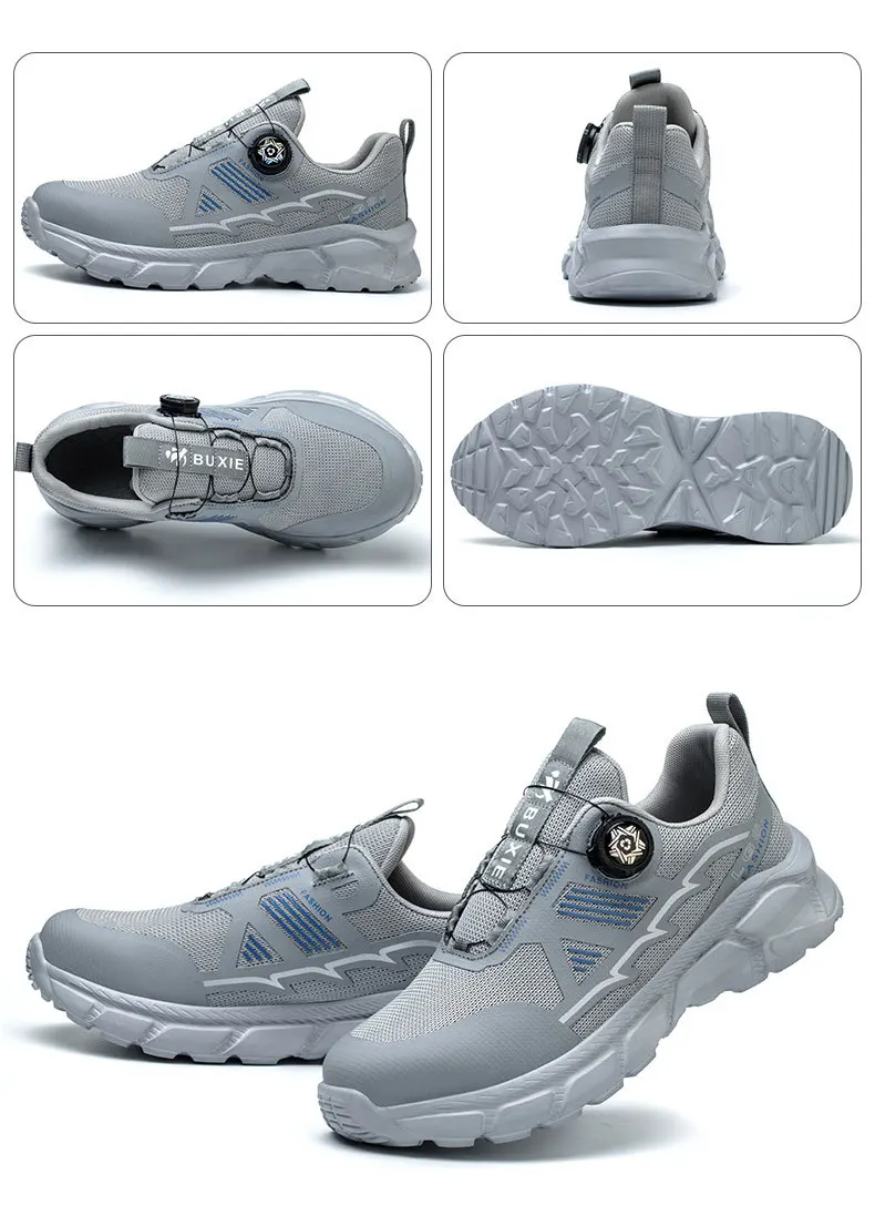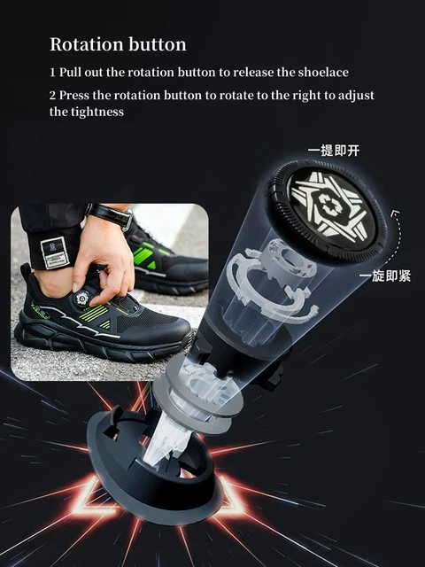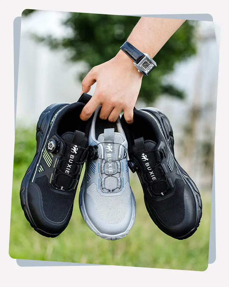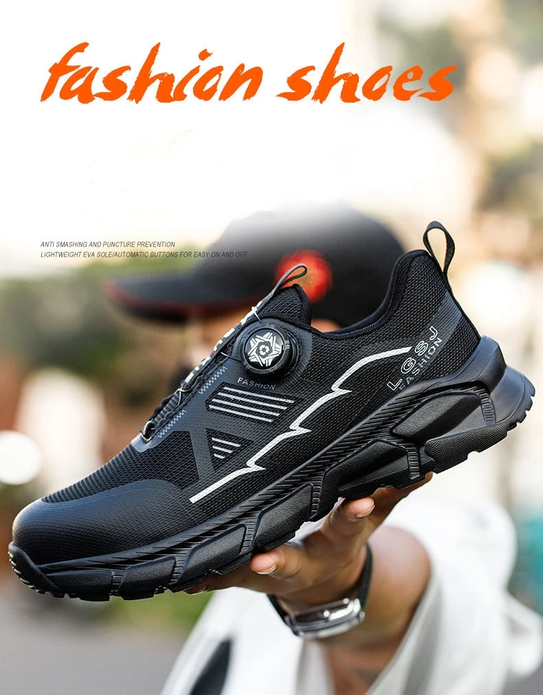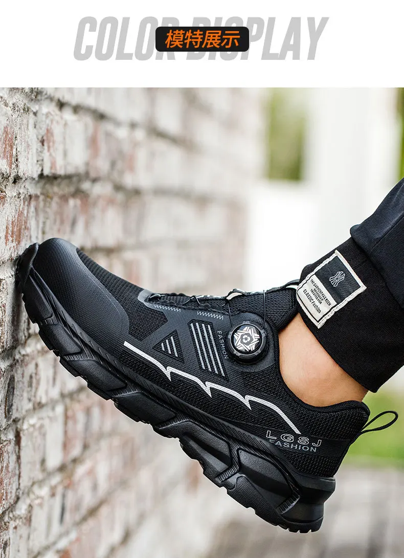 Plus size 38- 45 Lightweight Work Safety Shoes Men Women Steel Toe Shoes Rotating Button Work Sneakers Protective Safety Boots