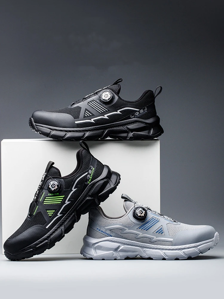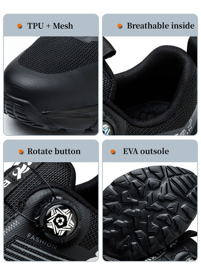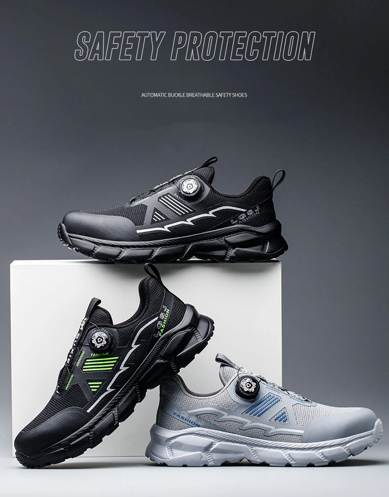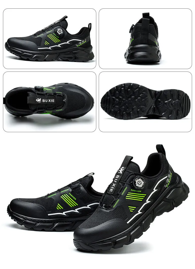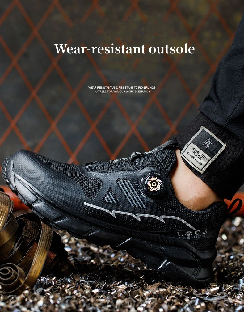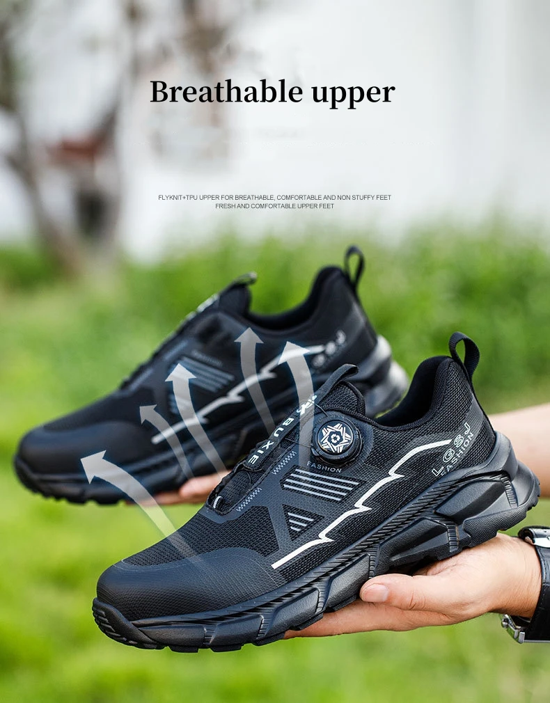 Plus size 38- 45 Lightweight Work Safety Shoes Men Women Steel Toe Shoes Rotating Button Work Sneakers Protective Safety Boots