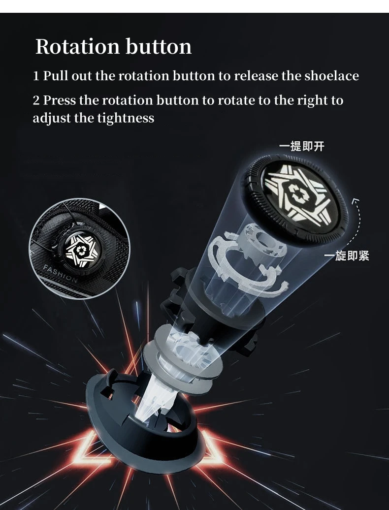1 Pull out the rotation button to release the shoelace