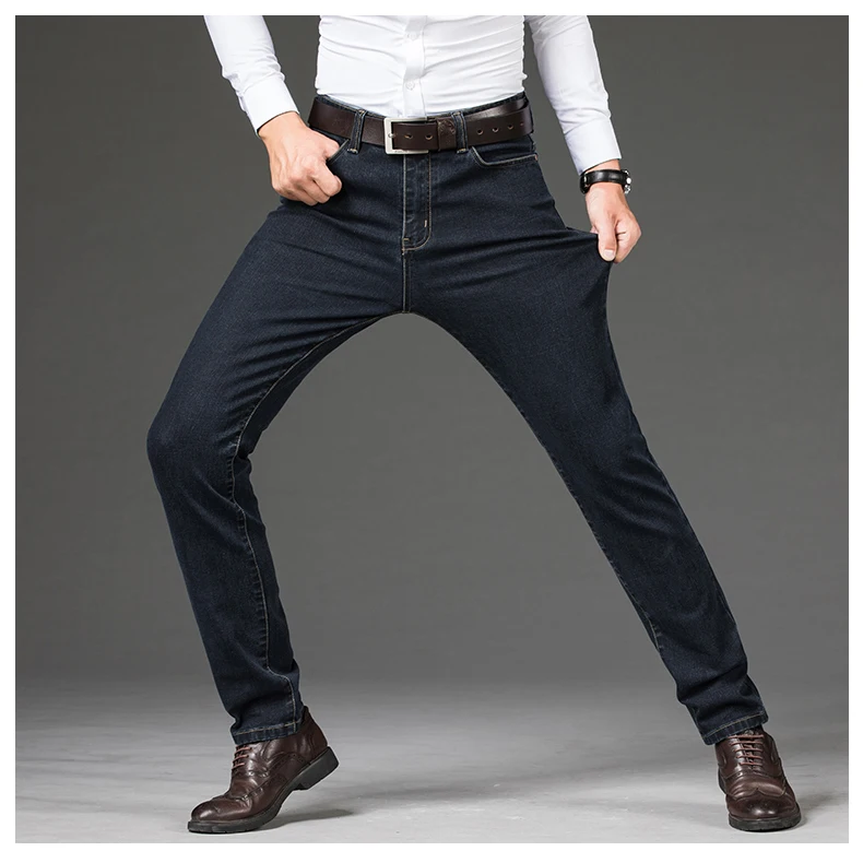 Plus Size 42 44 46 Men's Business Jeans Spring Autumn Stretch Trousers Casual Straight Denim Pants Classic Brand Male Clothing