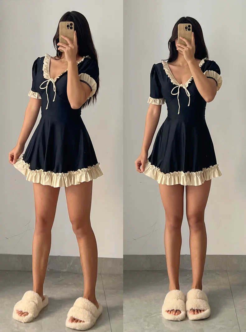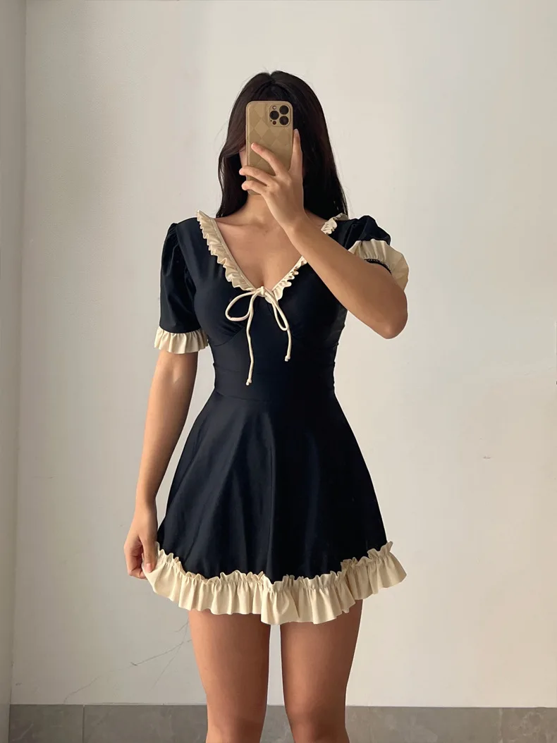 Plus Size Black Swimsuits Women Swimwear Summer New Dress Style Conservative Bathing Suit Vacation Beach Wear Female Clothes