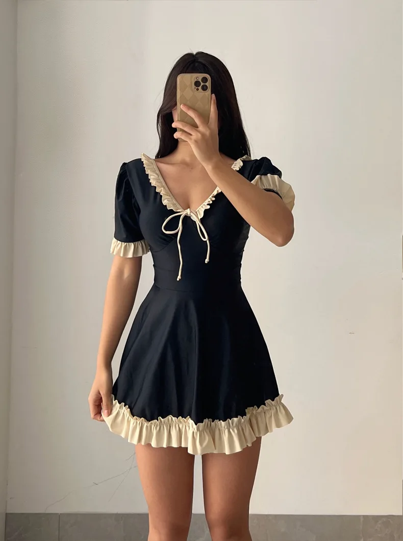 Plus Size Black Swimsuits Women Swimwear Summer New Dress Style Conservative Bathing Suit Vacation Beach