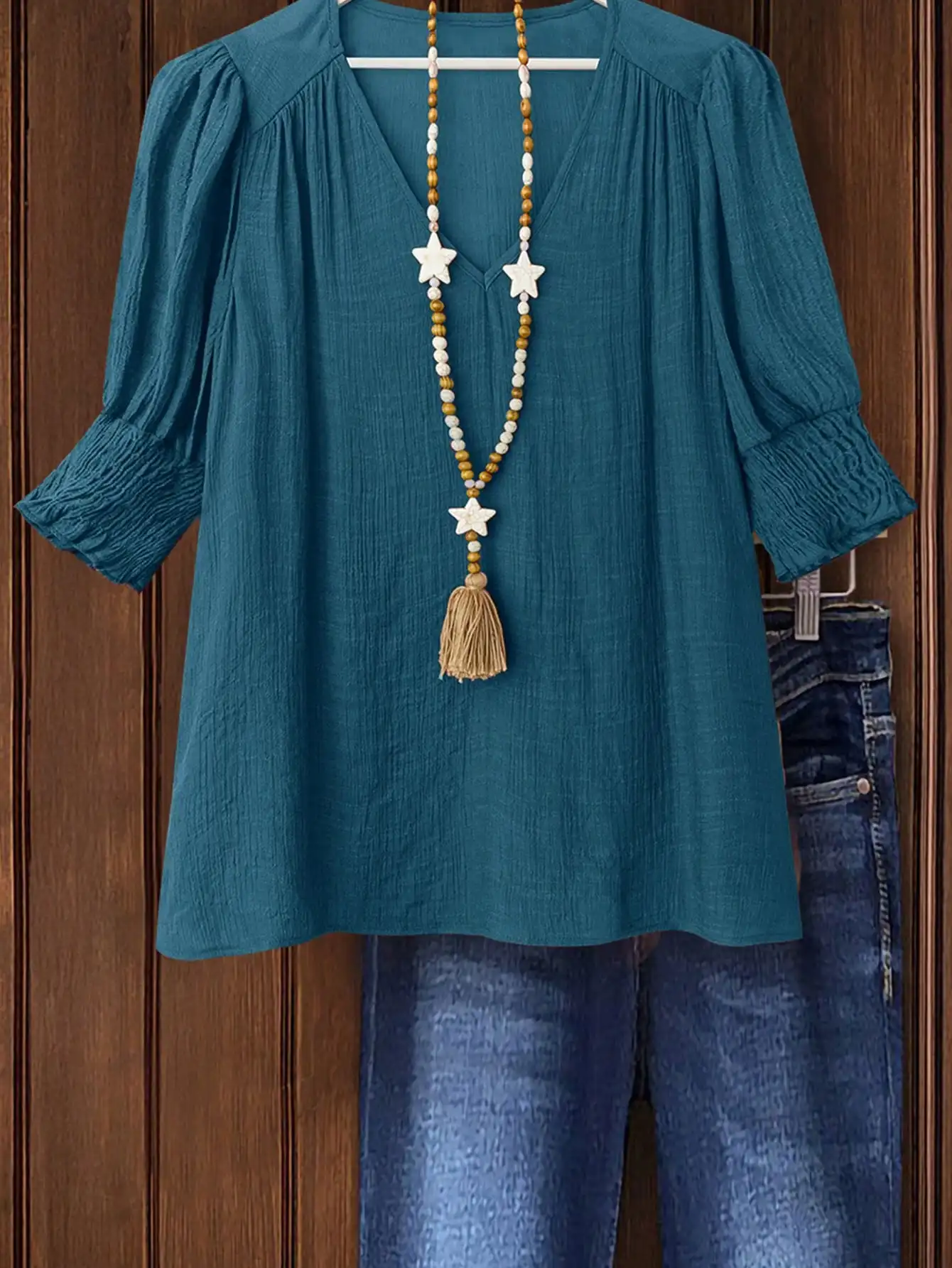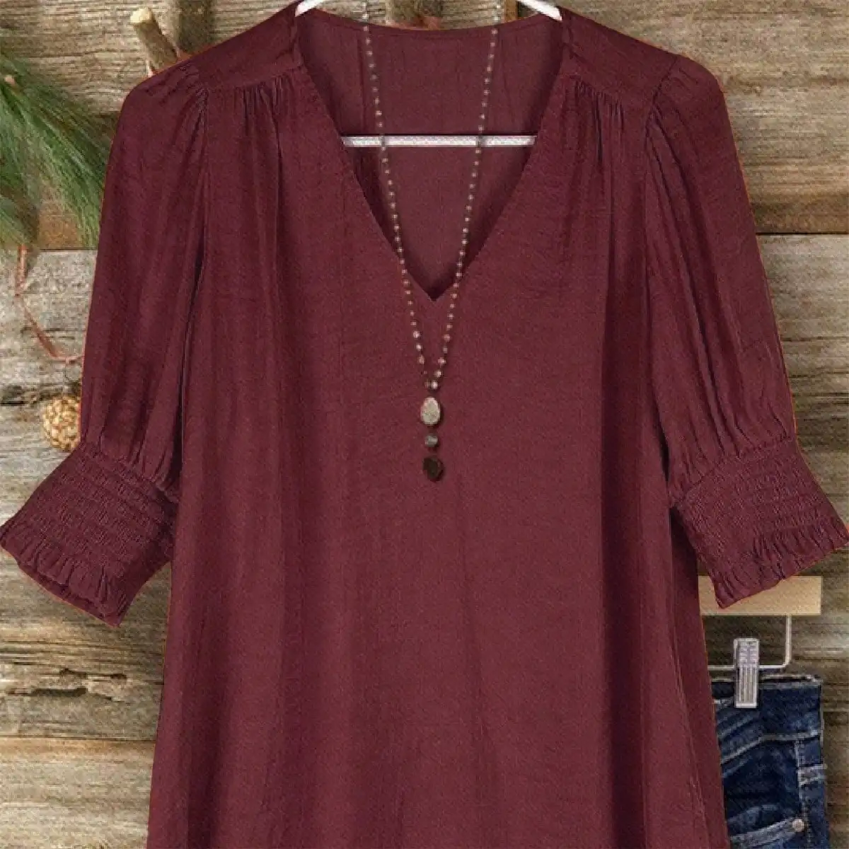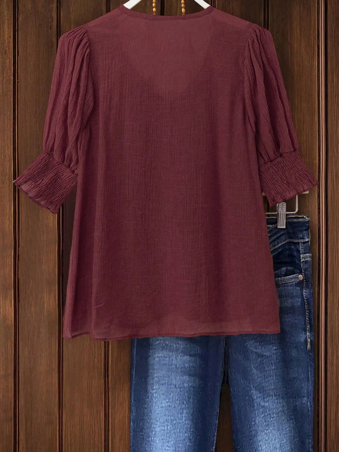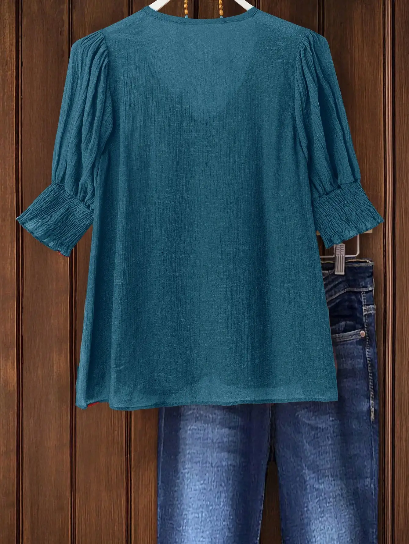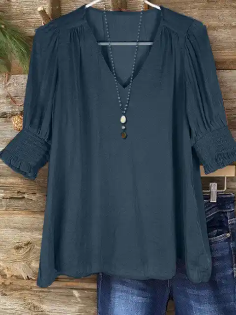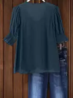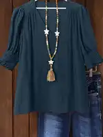 Plus Size Bohemian Style Vacation Short-Sleeved Linen Blend Shirt Top for Women