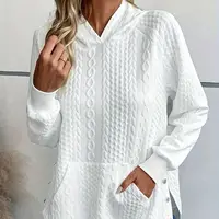 Plus Size Casual Sweatshirt, Women’s Plus Solid Cable Long Sleeve Button Hoodie With Pockets
