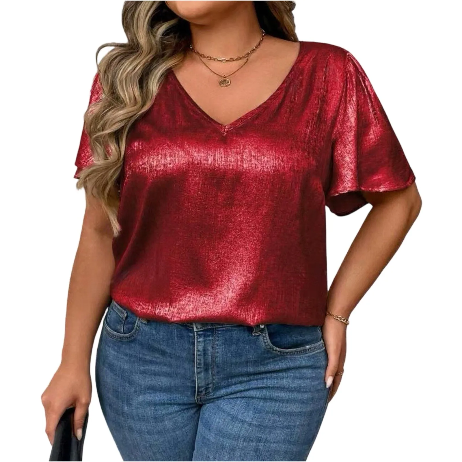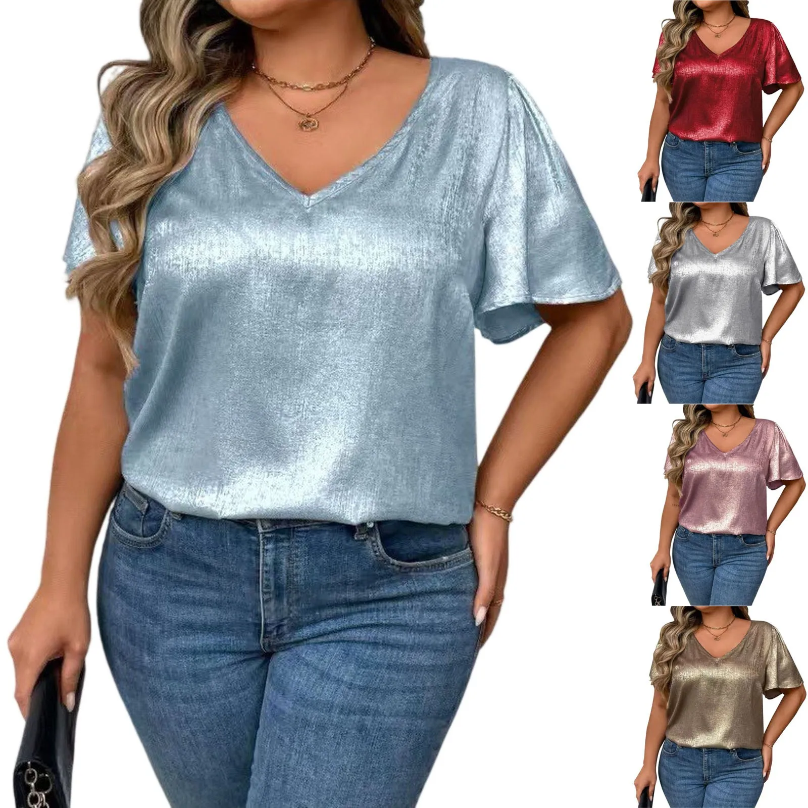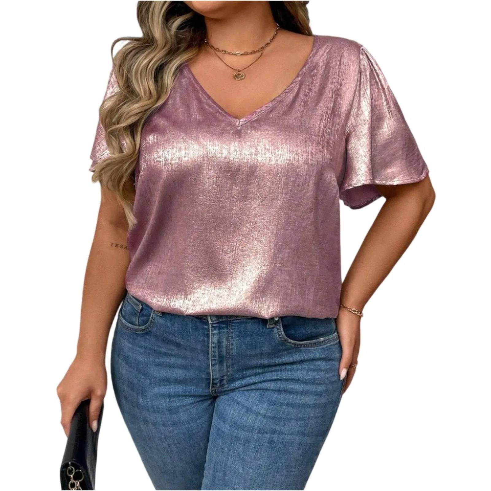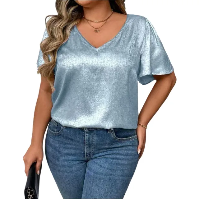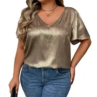T Shirts For Women Pleated R-Neck Dressy Casual Blouses Printing Short Sleeve Summer Tops Loose Fit