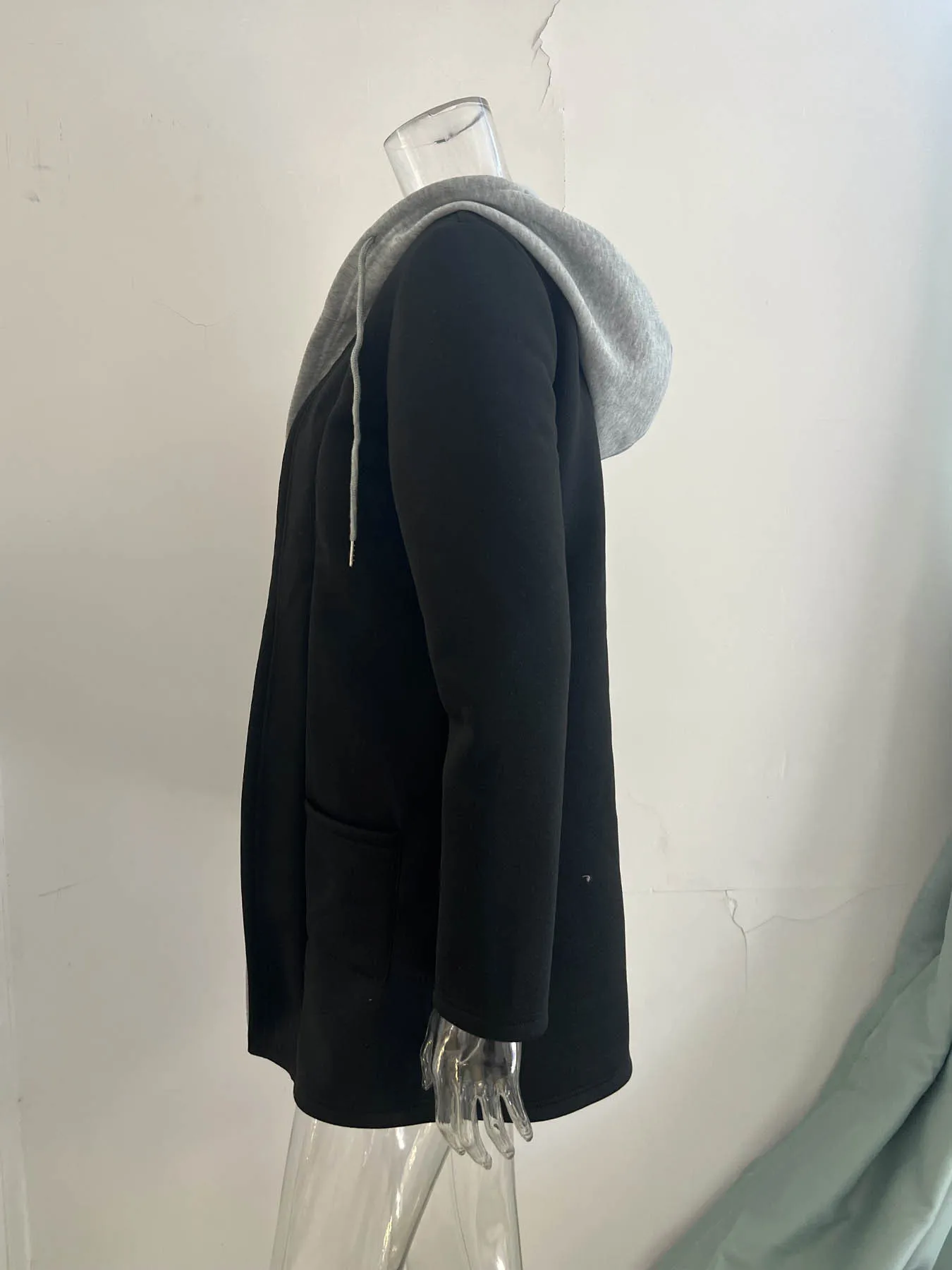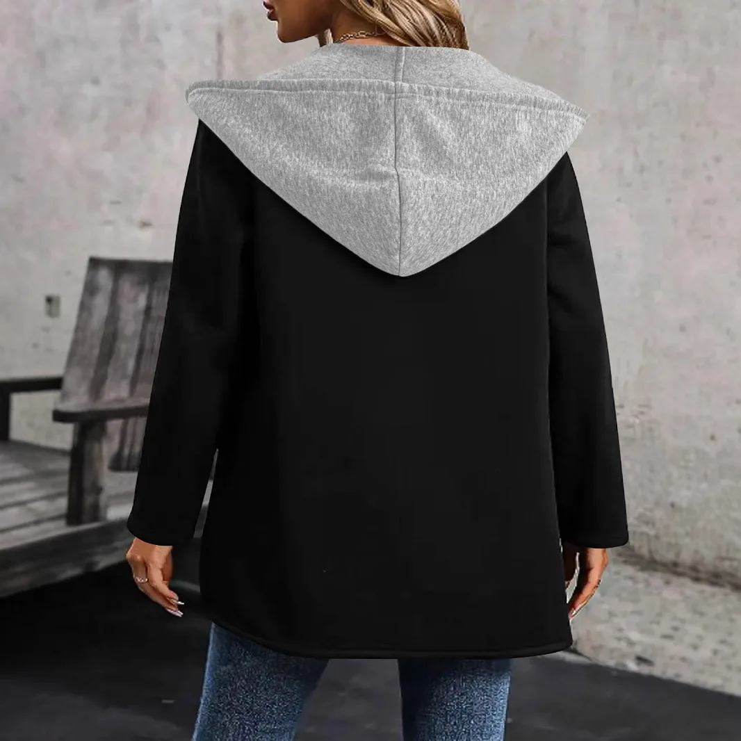 A large-sized European and American women's full-zipper knitted texture solid-color hooded long-sleeved sweater coat with a fan-