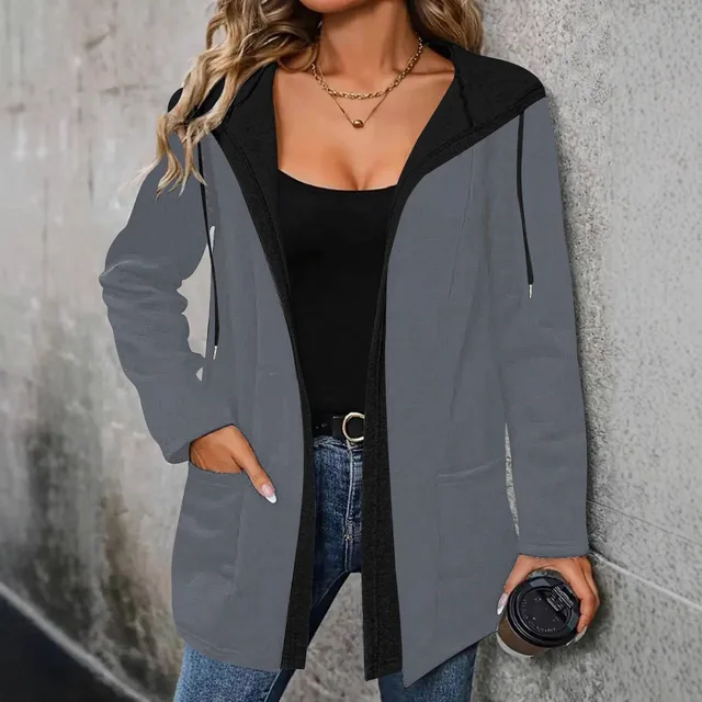 A large-sized European and American women's full-zipper knitted texture solid-color hooded long-sleeved sweater coat with a fan-