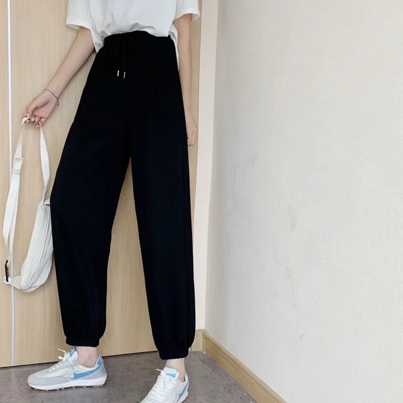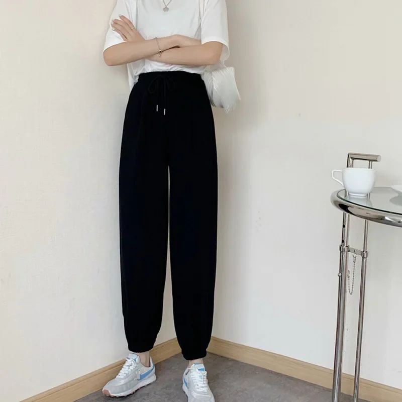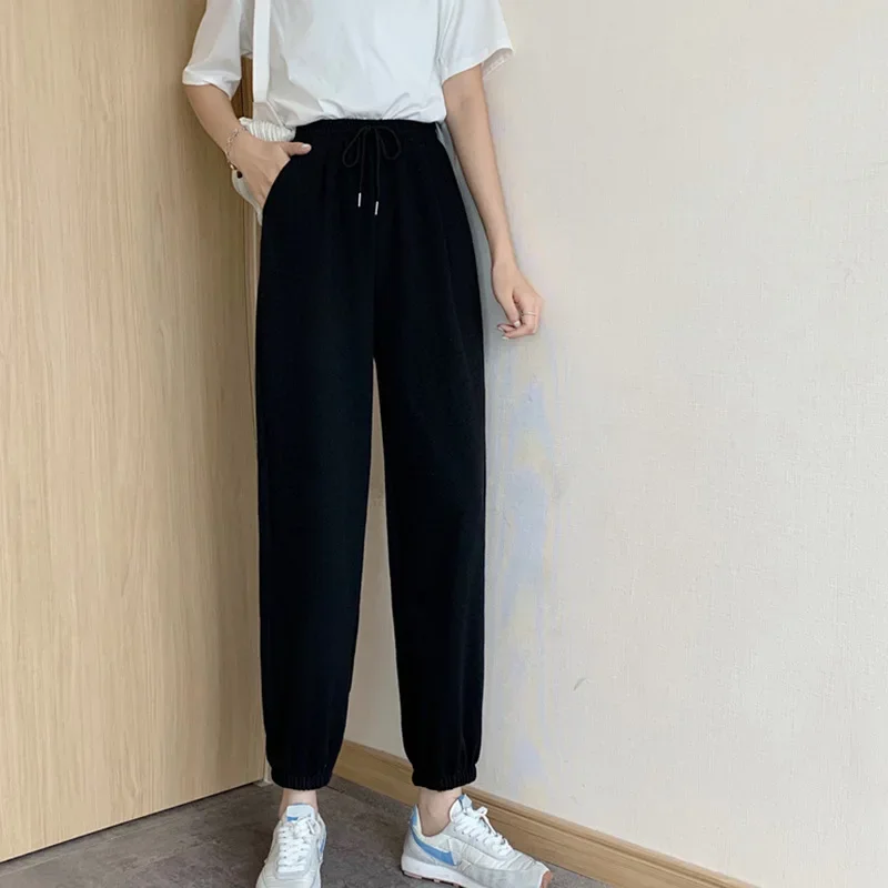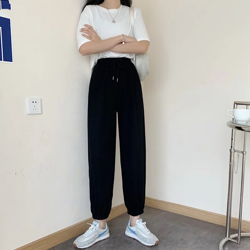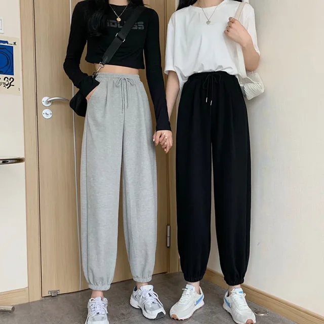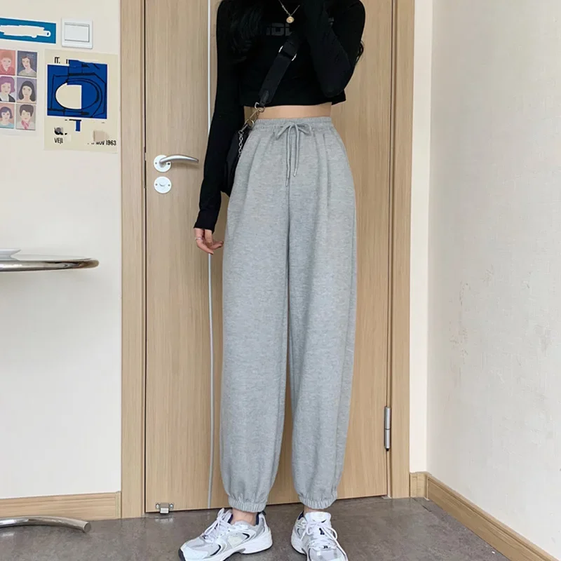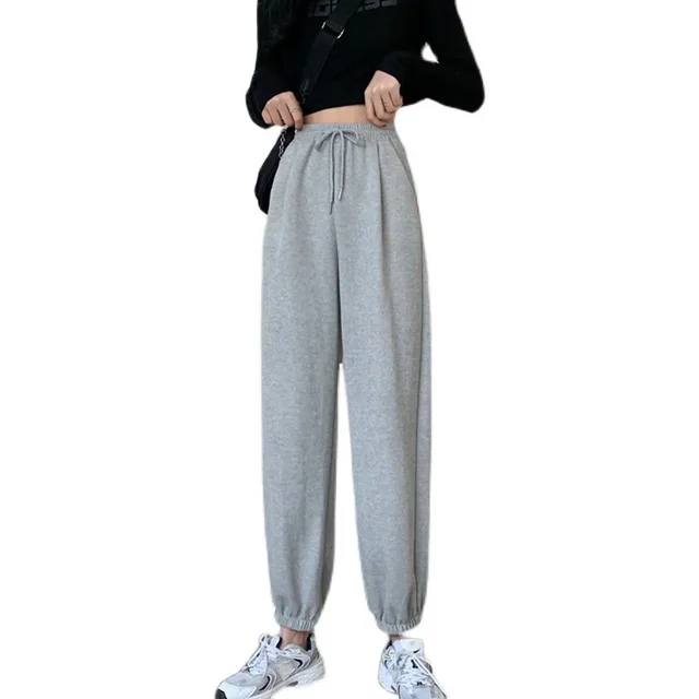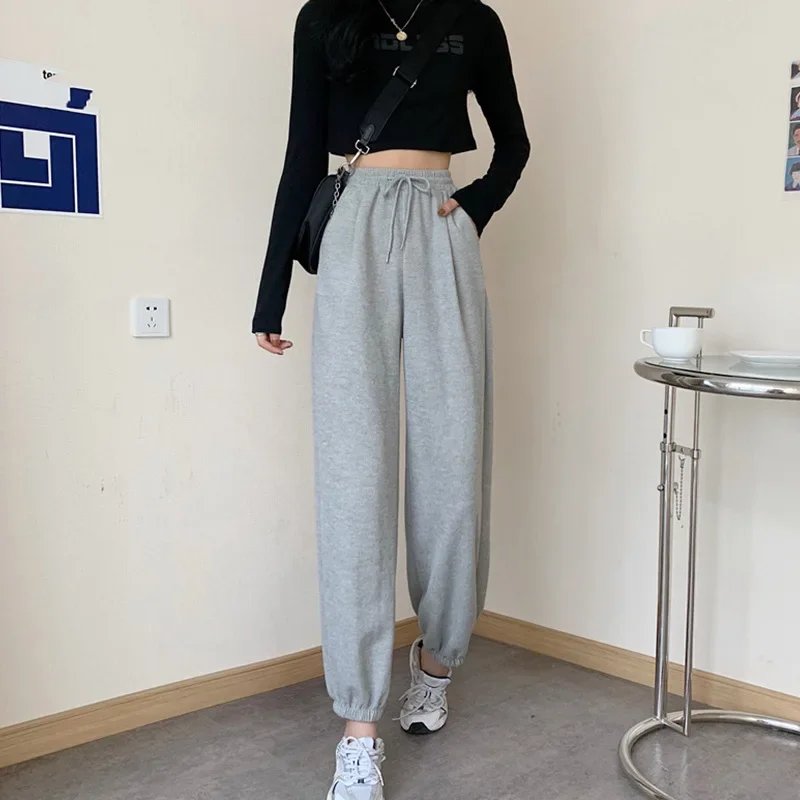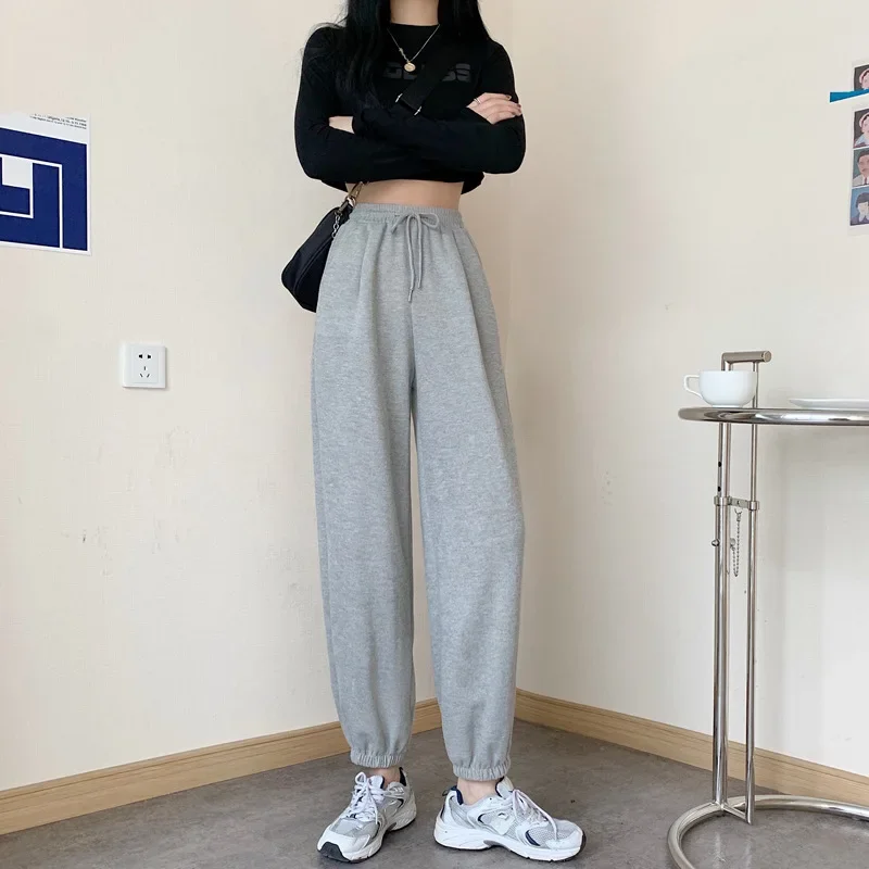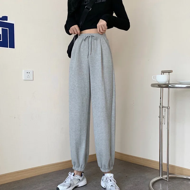 Plus Size Grey Sports Pants Women Loose Cuffed Autumn Winter New Style Slim Straight Leg Pure Color Casual Sweatpants plus Size