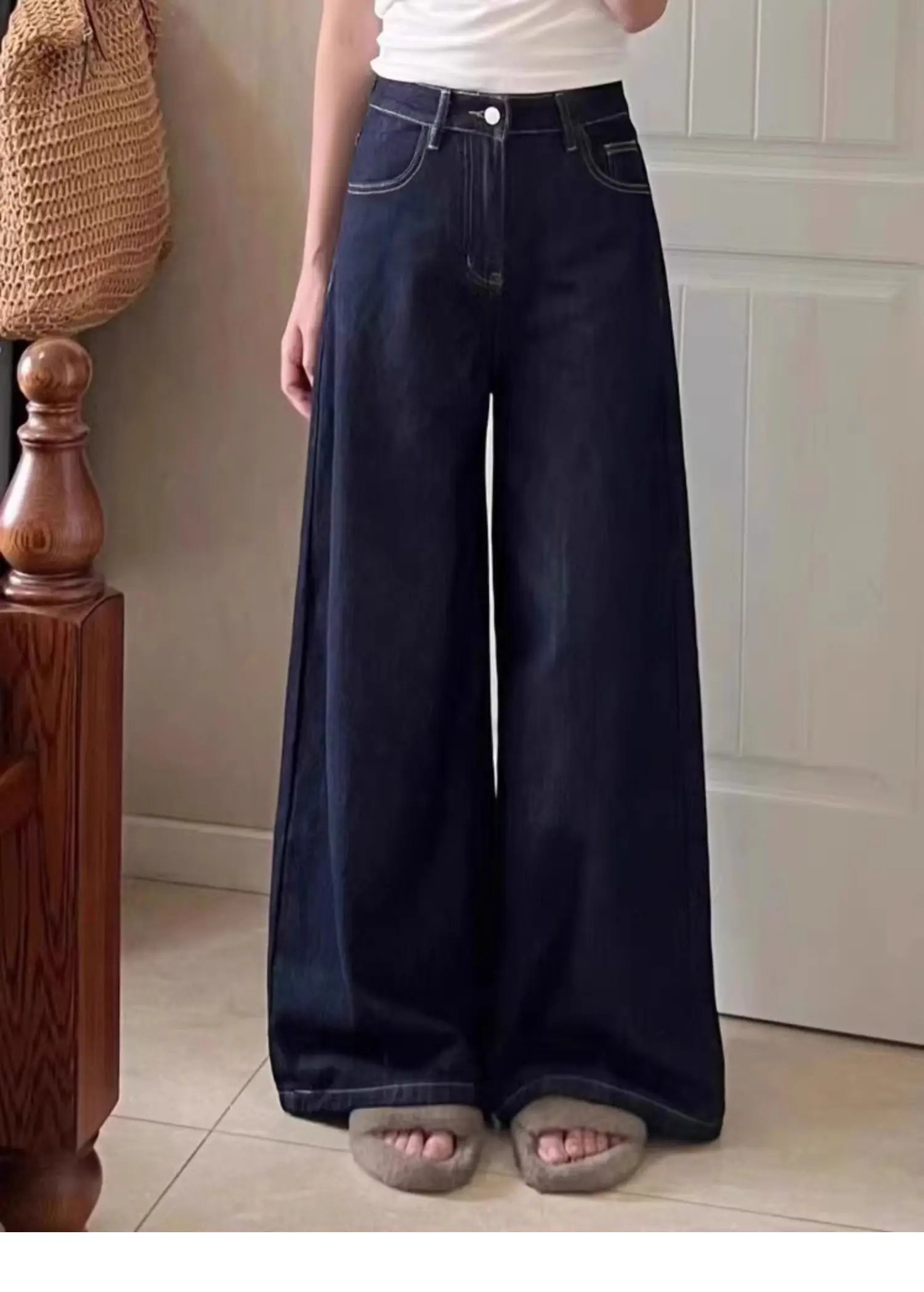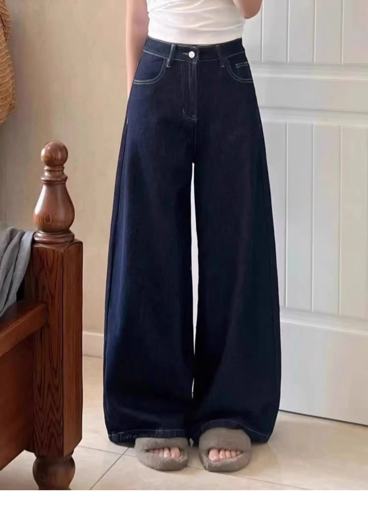 The wide leg cut of these jeans not only offers a relaxed fit but also creates an illusion of longer legs, enhancing your overall look.