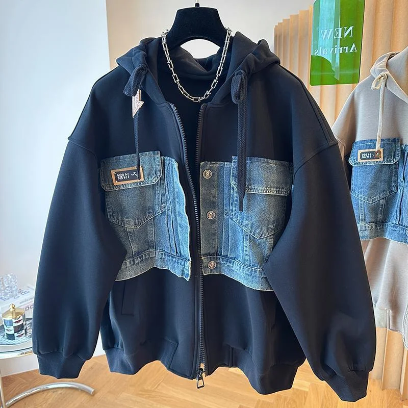 With its loose fit and long sleeves, this jacket provides comfort and warmth during the autumn and winter seasons.