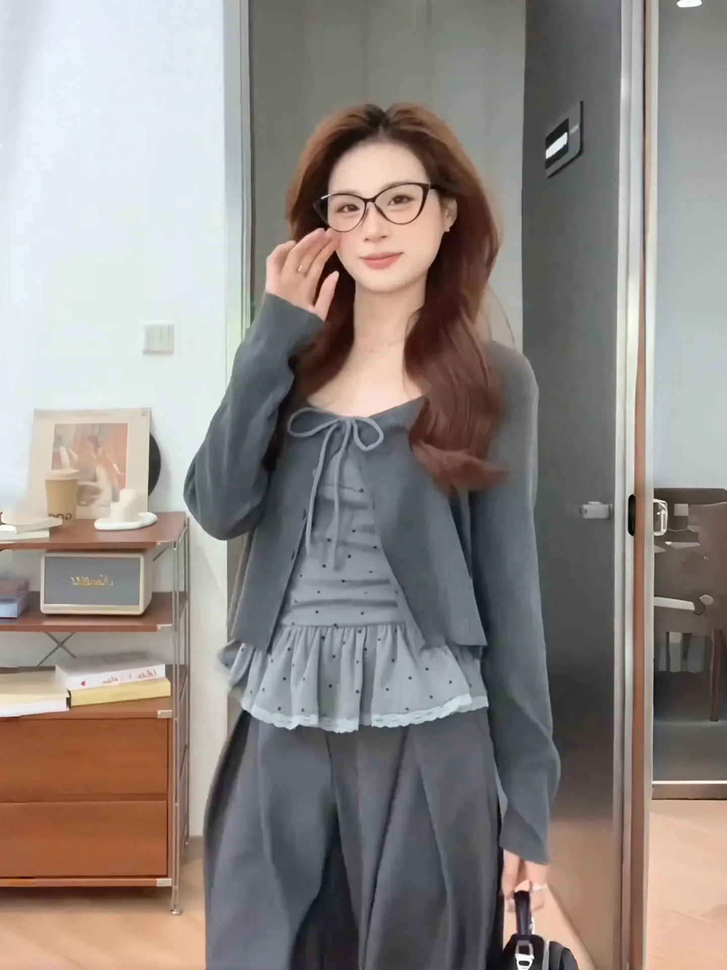 The butterfly knot detail on the cardigan adds a feminine touch and enhances the overall aesthetic.