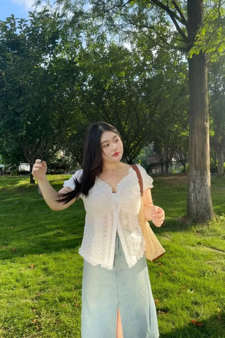 This French-inspired lace short-sleeved shirt exudes elegance and sophistication, perfect for summer wear.