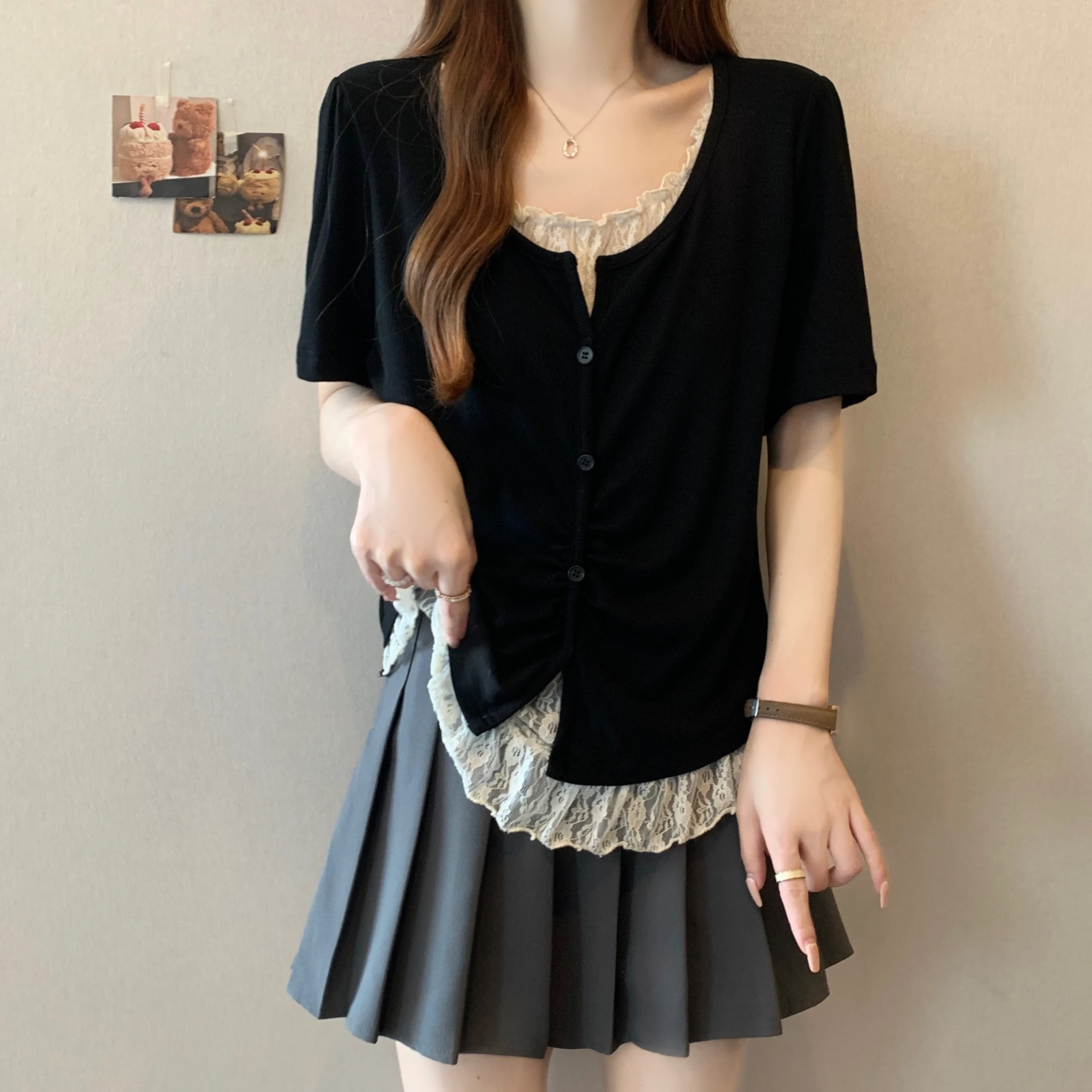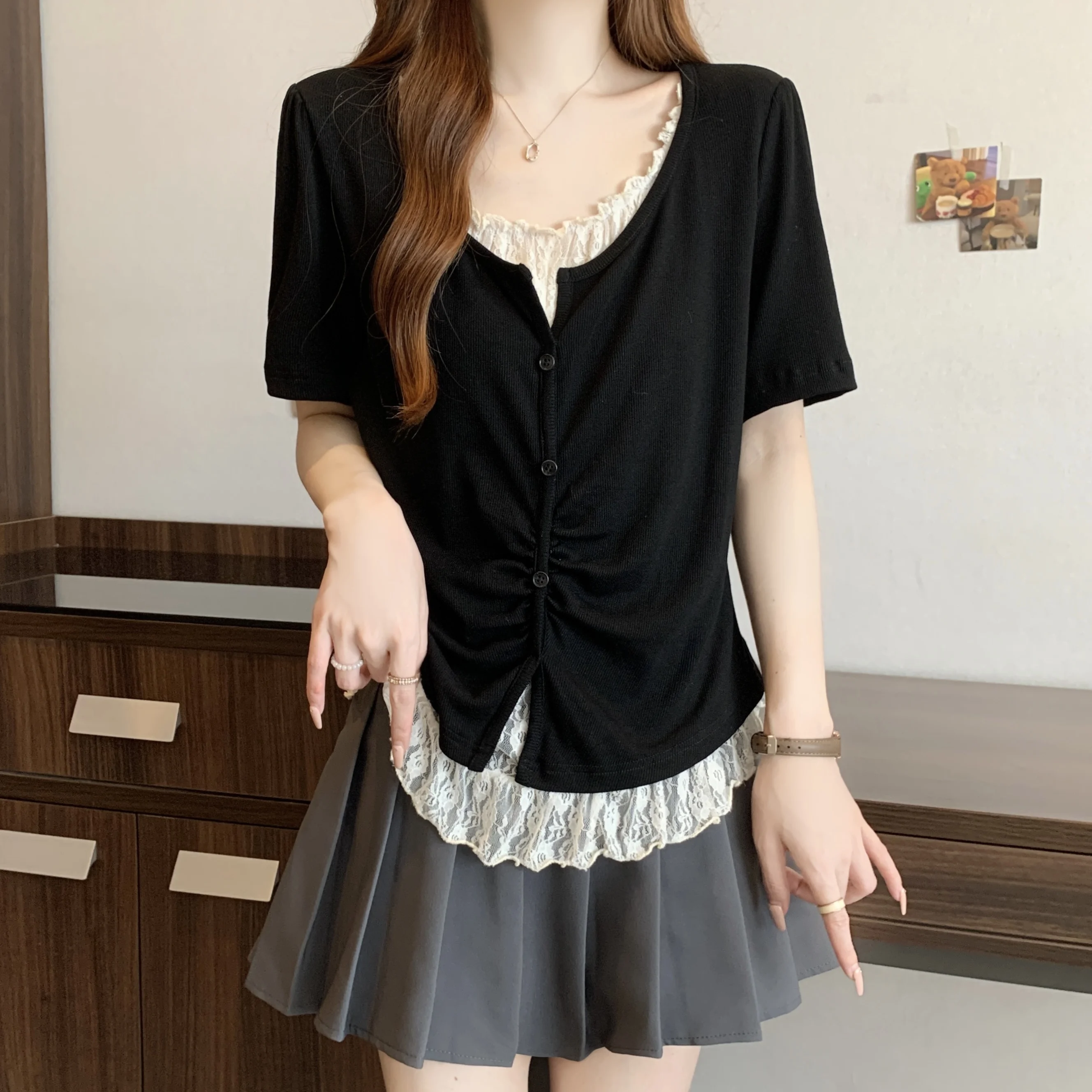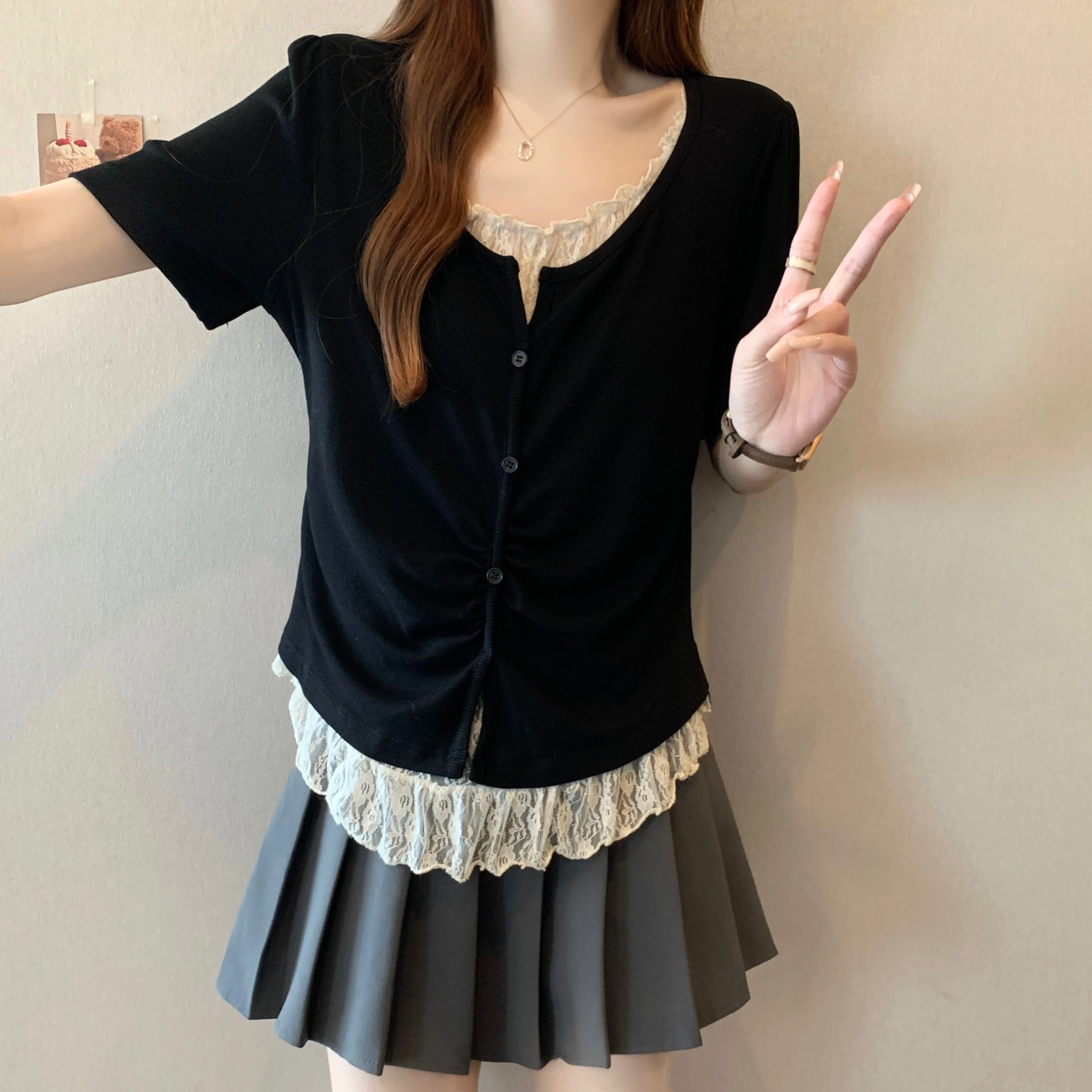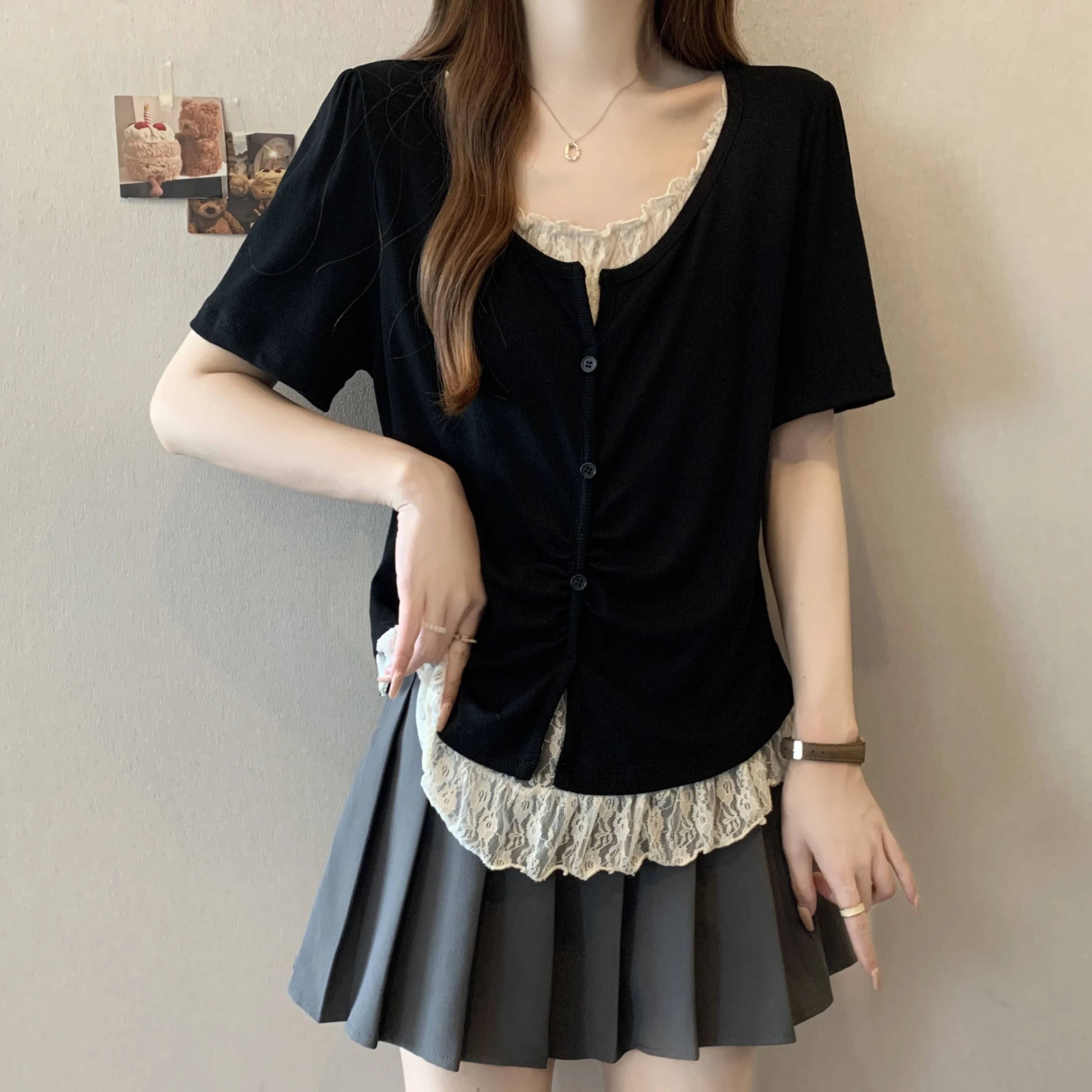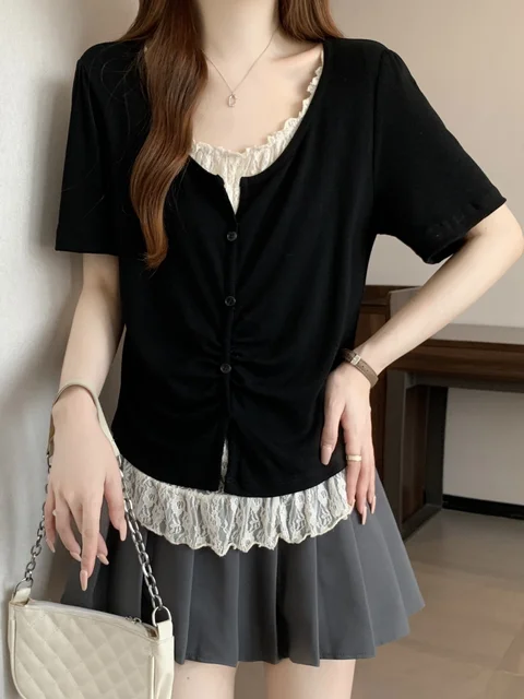 With its Korean-style design and round neck, this T-shirt can be dressed up or down, making it a versatile addition to your wardrobe.