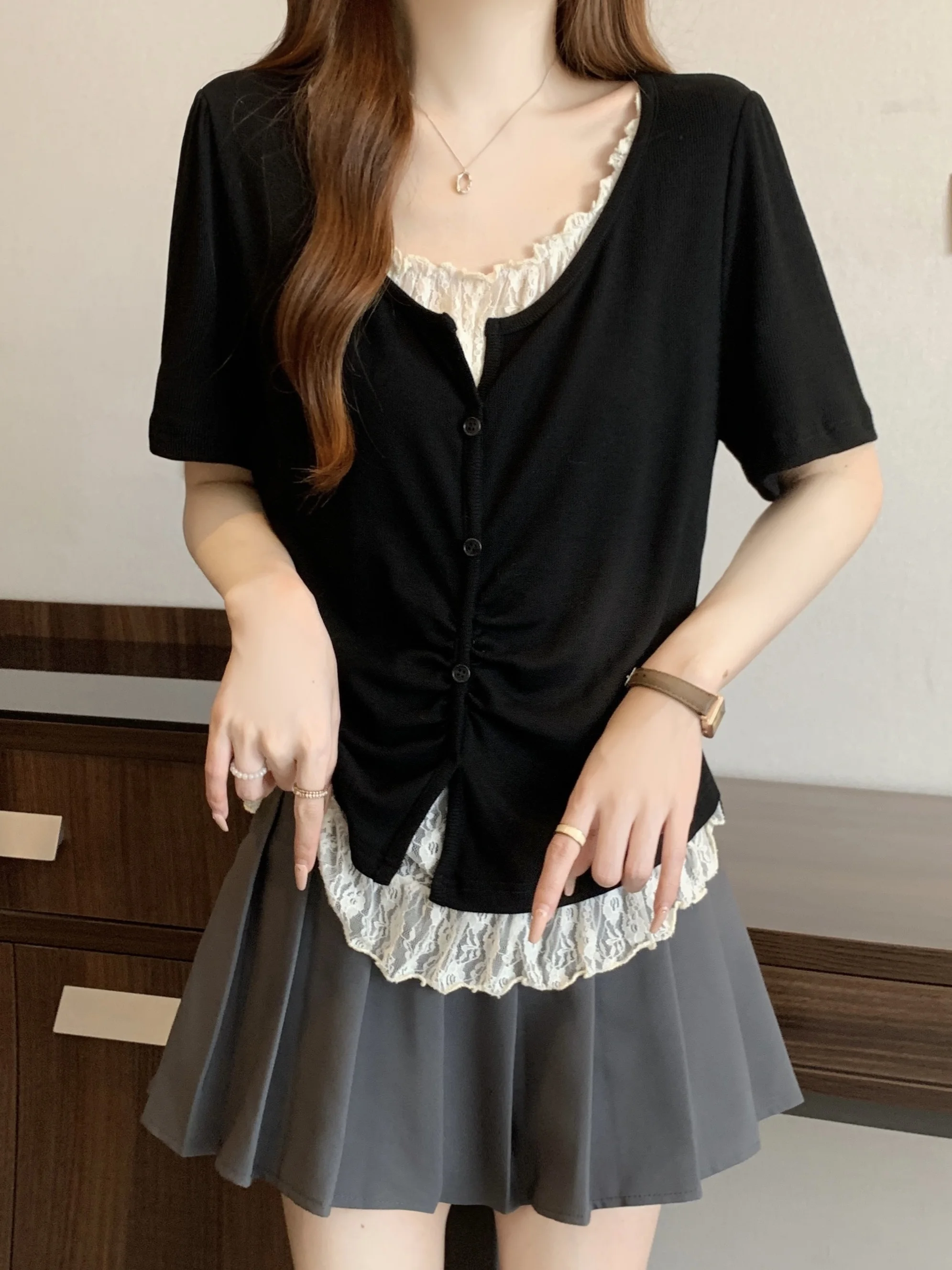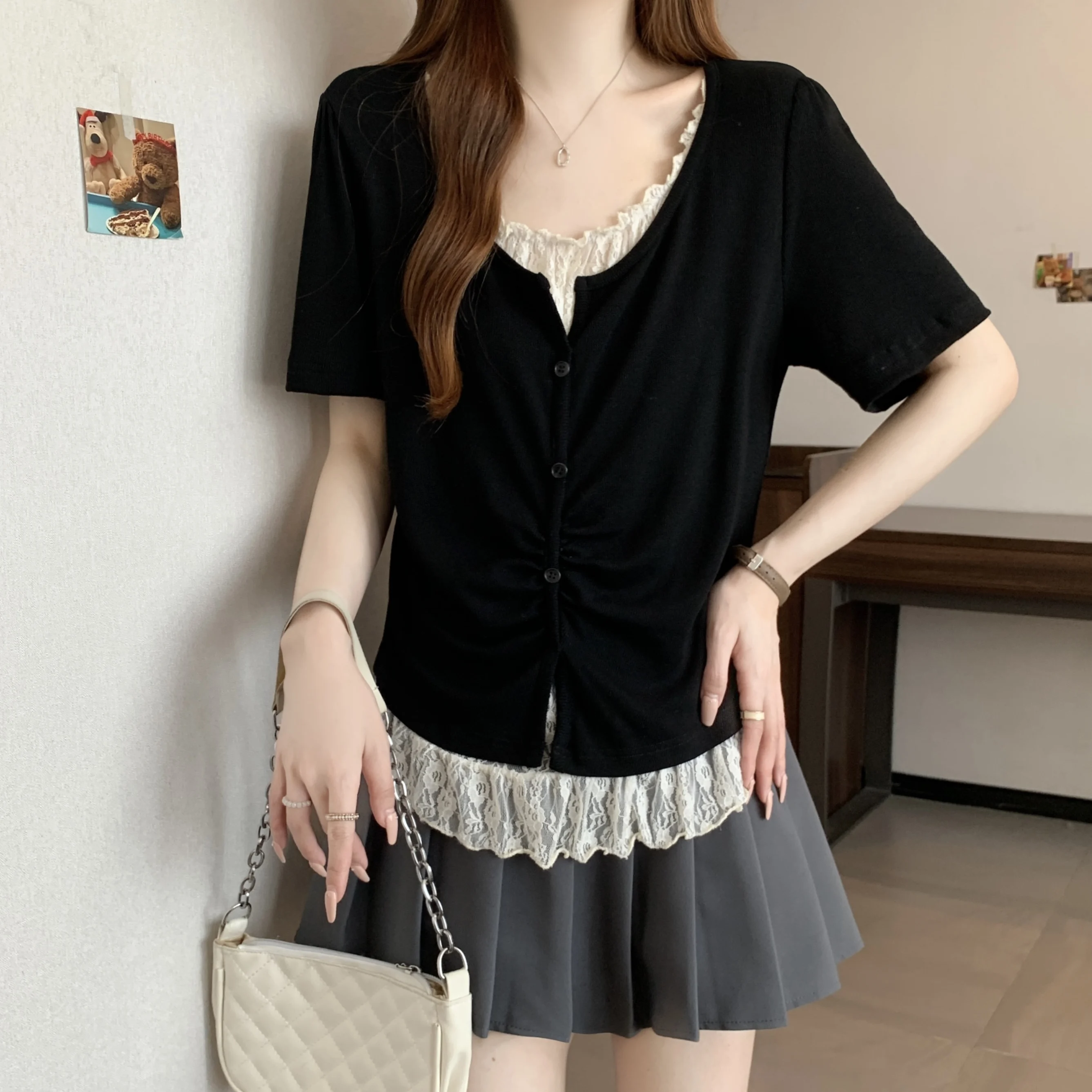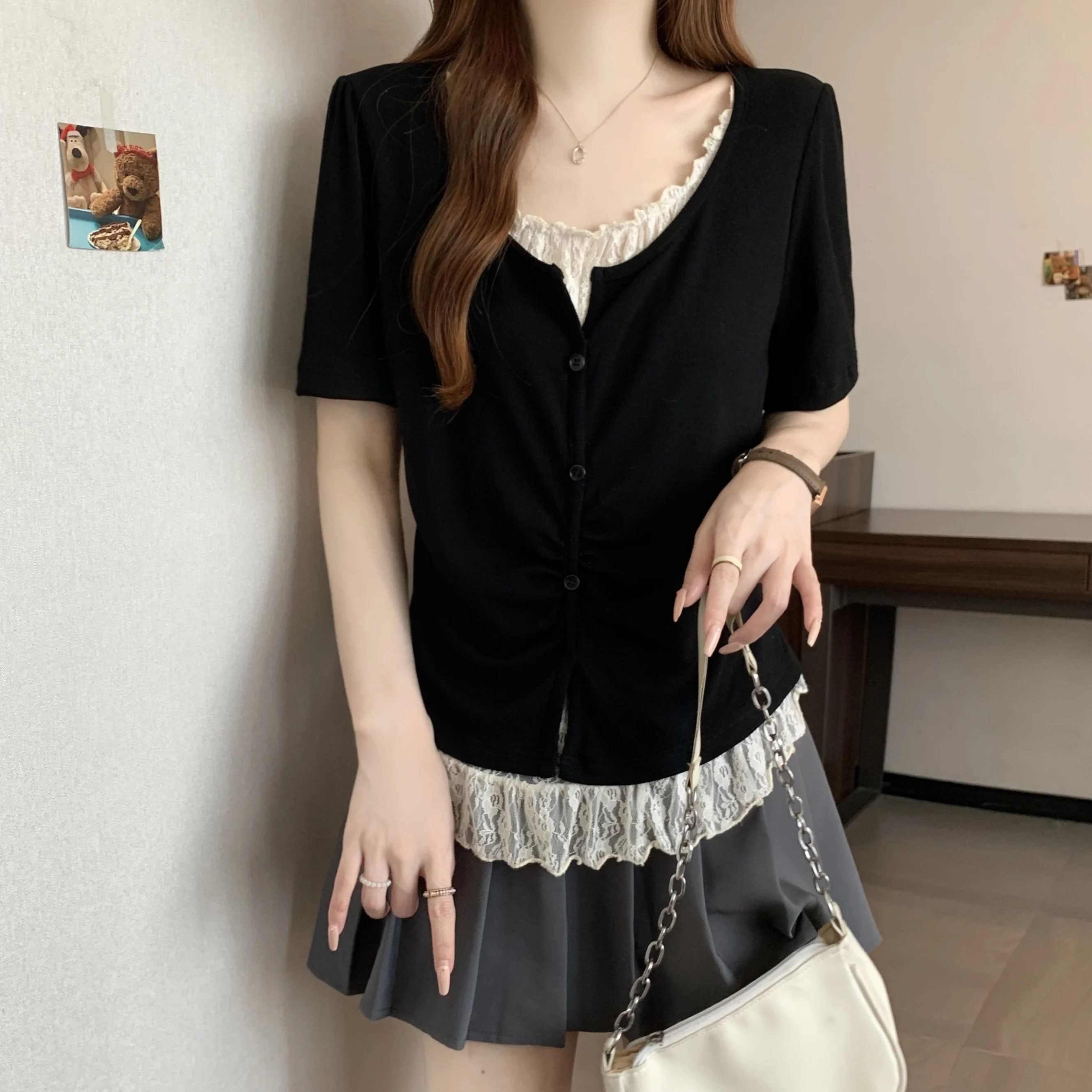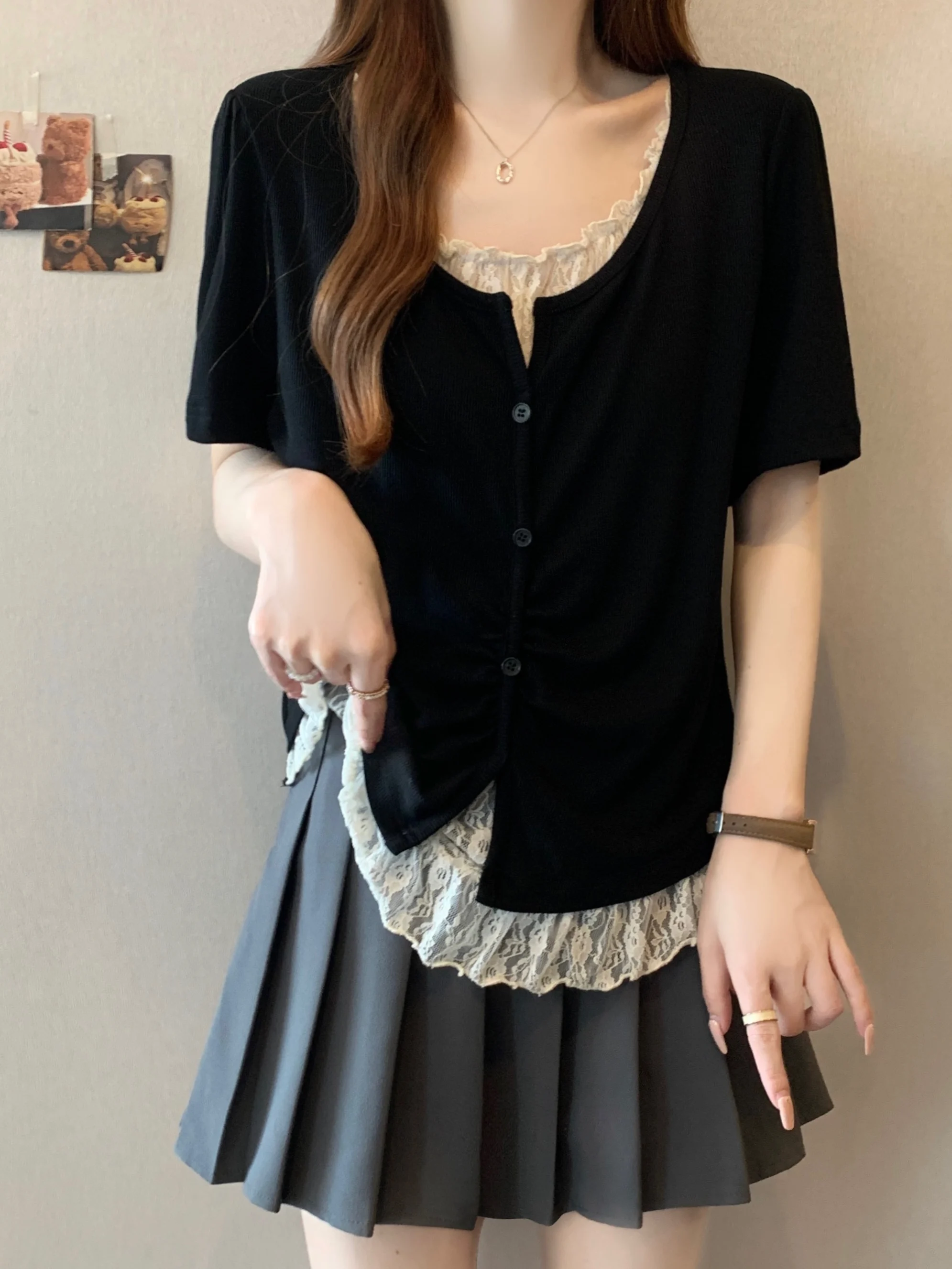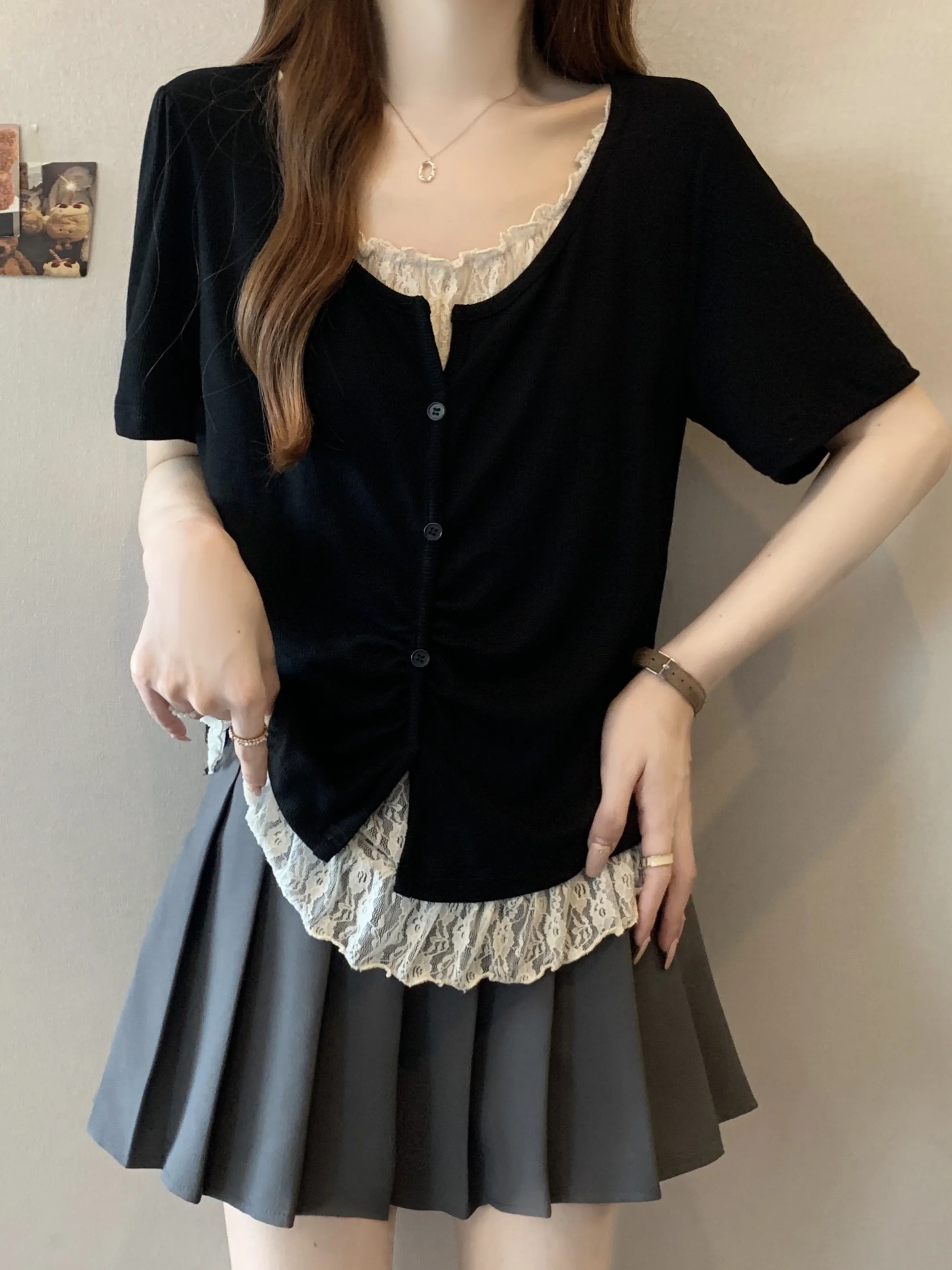 With its Korean-style design and round neck, this T-shirt can be dressed up or down, making it a versatile addition to your wardrobe.