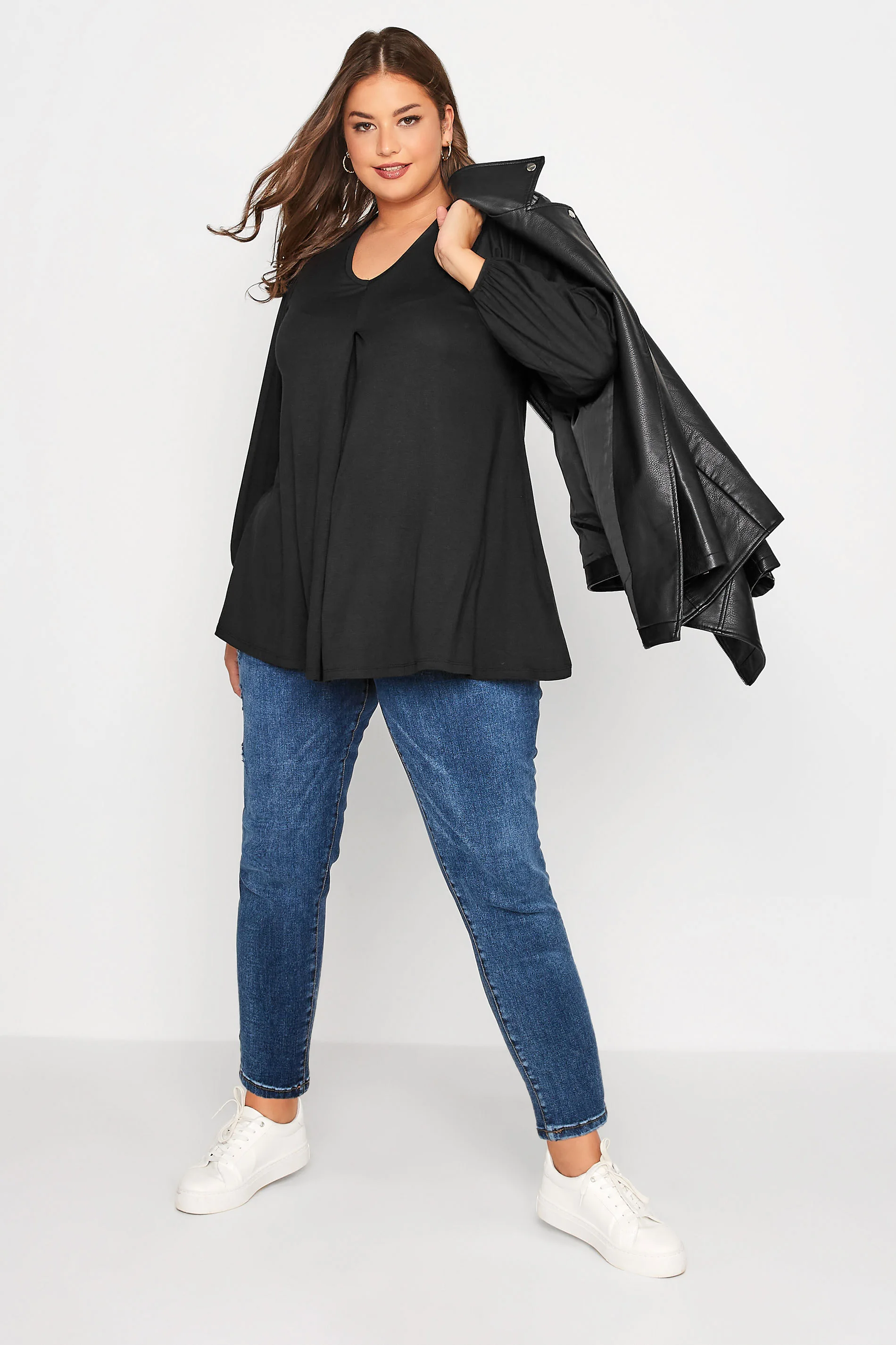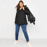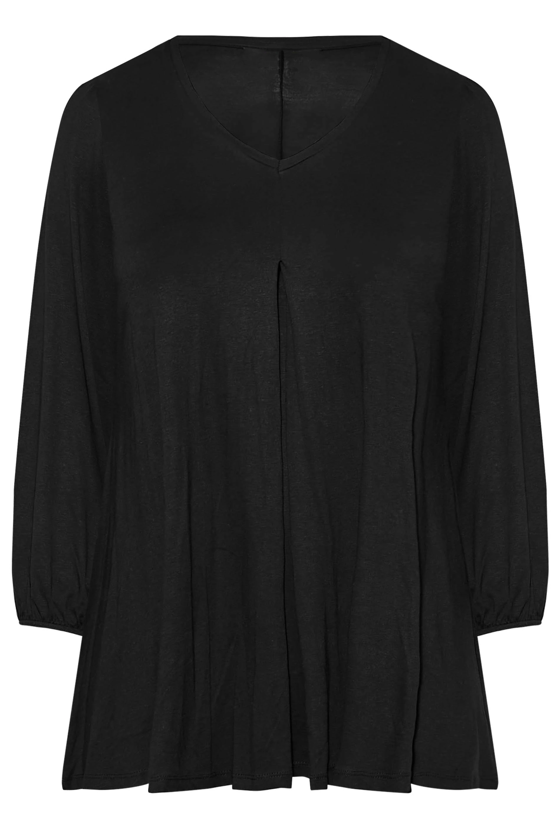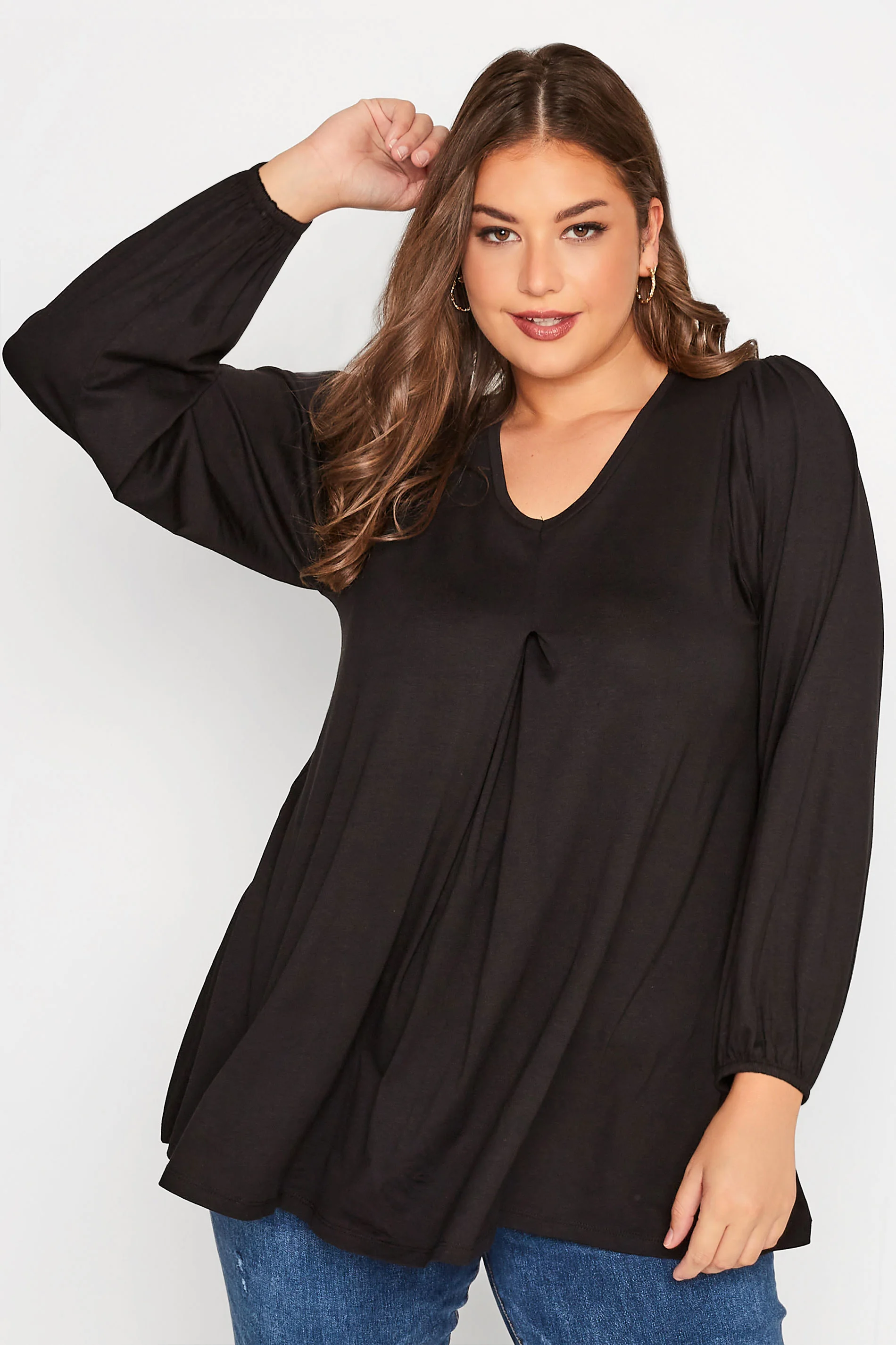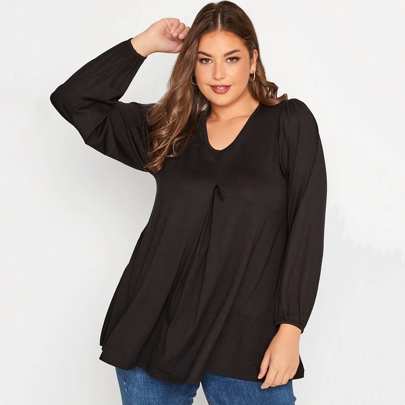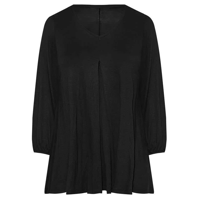 Details:Swing style,V-neckline,Pleat front,Long sleeves
