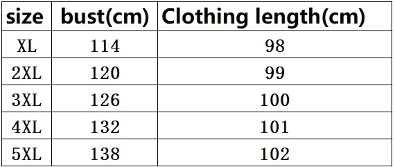 | size_info | {"sizeInfoList":[{"length":{"cm":"114","inch":"44.88"},"size":"XL","vid":-1},{"length":{"cm":"120","inch":"47.24"},"size":"XXL","vid":-2},{"length":{"cm":"126","inch":"49.61"},"size":"XXXL","vid":-3},{"length":{"cm":"132","inch":"51.97"},"size":"4XL","vid":-4},{"length":{"cm":"138","inch":"54.33"},"size":"5XL","vid":-5}]} |