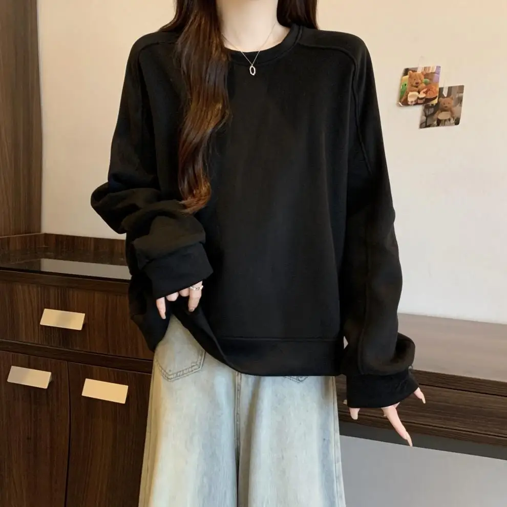 With its solid color and round neck design, this sweatshirt is versatile enough for both casual and commute wear.